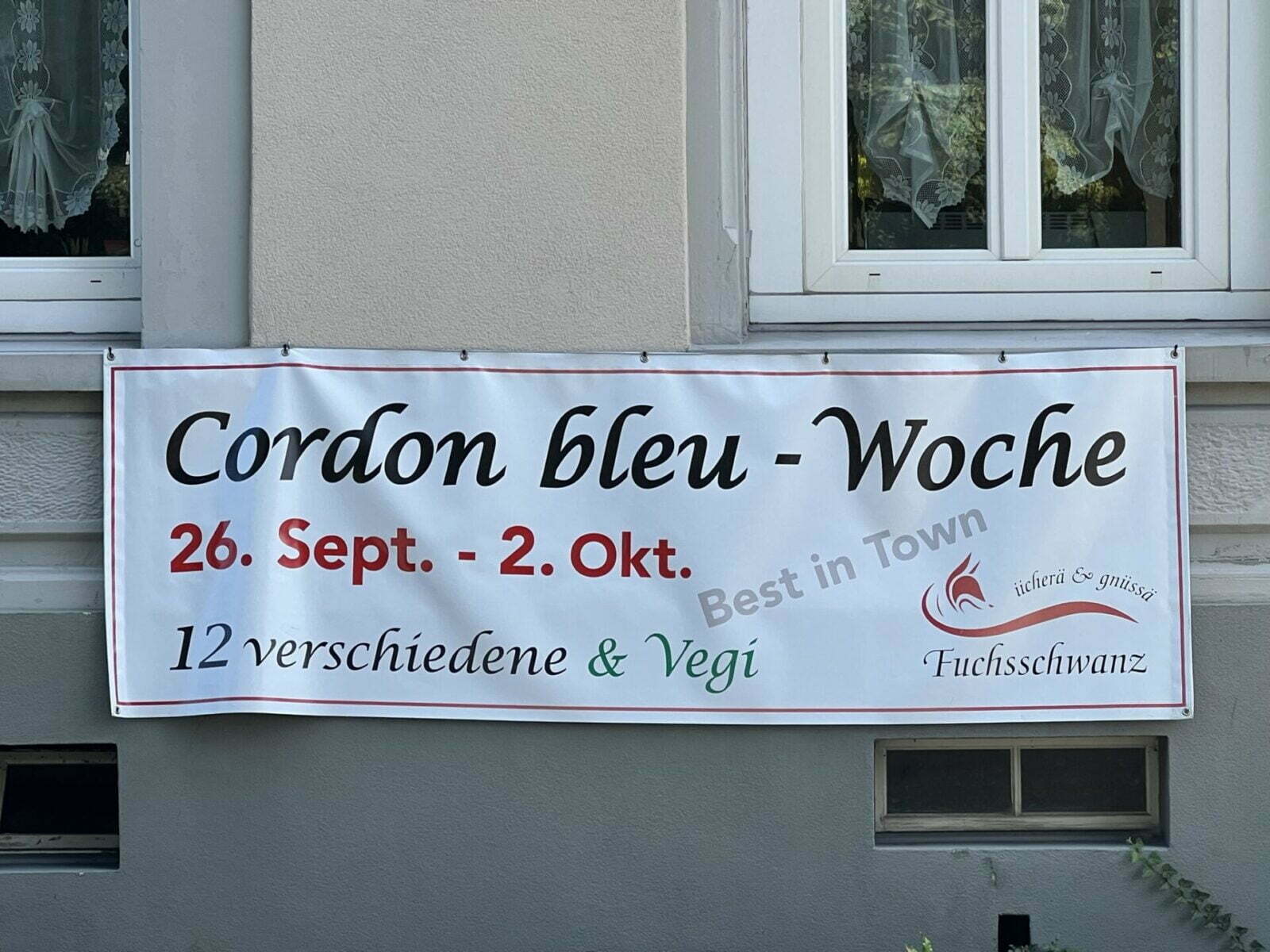 Von morgen Montag, 26. September, bis und mit Sonntag, 02. Oktober 2022 ist wieder Cordon bleu-Woche im Fuchsschwanz angesagt. Es stehen 12 verschiedene feine Cordon Bleus zur Auswahl: