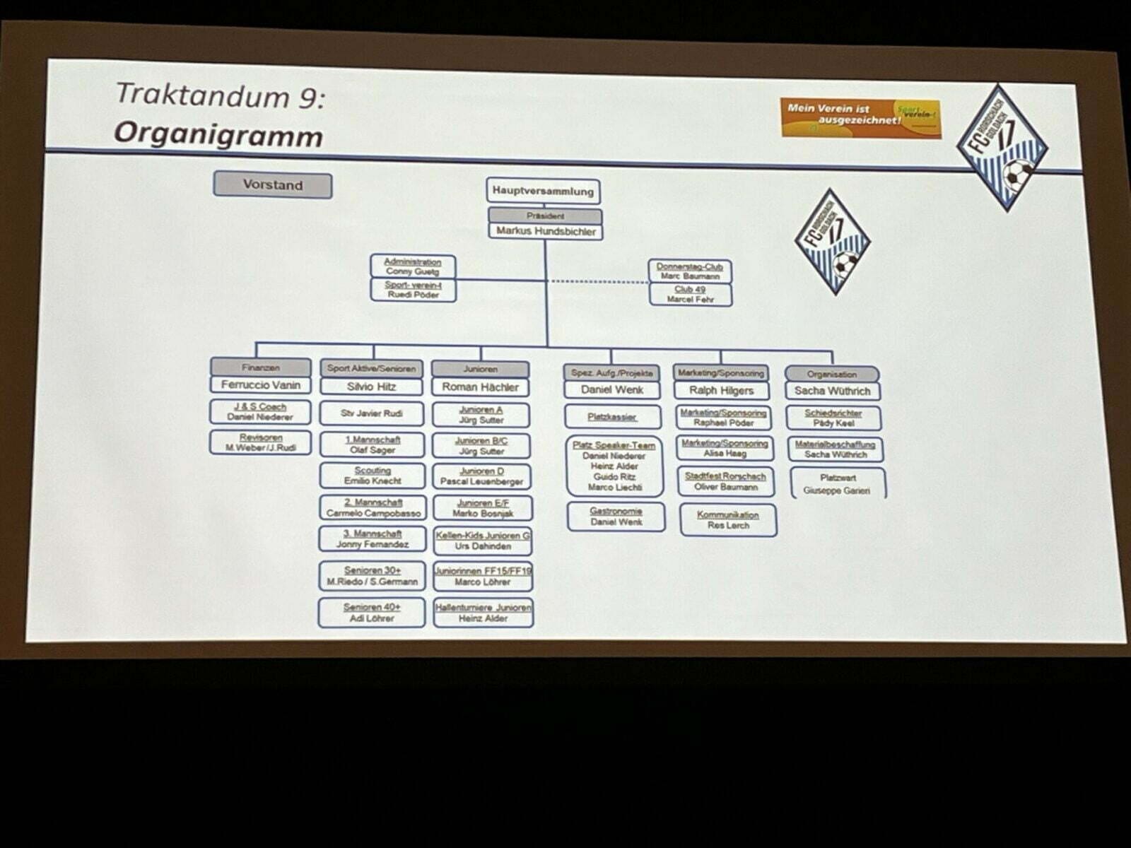 Stolz verkündete Markus Hundsbichler auch, dass der bisherige Hauptsponsor Nermin Kuc vom SportTreff Rorschach sein Engagement zugunsten des FC Rorschach-Goldach 17 bis zum Ende der Saison 25/26 verlängert hat. Dem anwesenden Nermin Kuc war langer Applaus sicher.