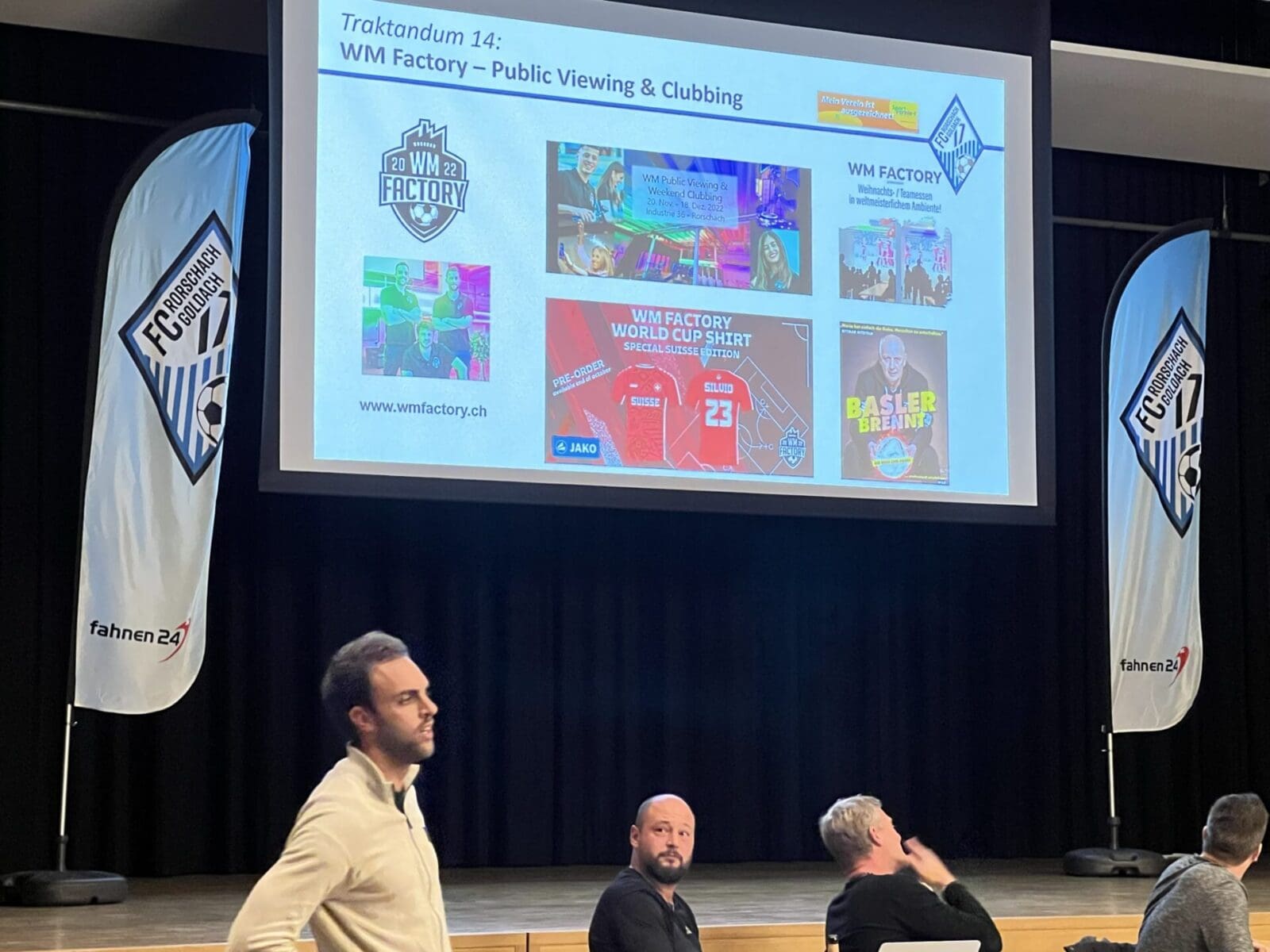 Der letzte Auftritt an der HV gehörte Nemi Babic. Der Torhüter der 1. Mannschaft wird zusammen mit seinen Vereinskameraden Yves Baumann und Silvio Hitz während der kommenden Fussball-WM in der Eventhalle Industrie36 in Rorschach ein grosses Public Viewing aufziehen und hat jetzt schon alle aufgerufen, gemeinsam diese grossen Spiele anzuschauen.