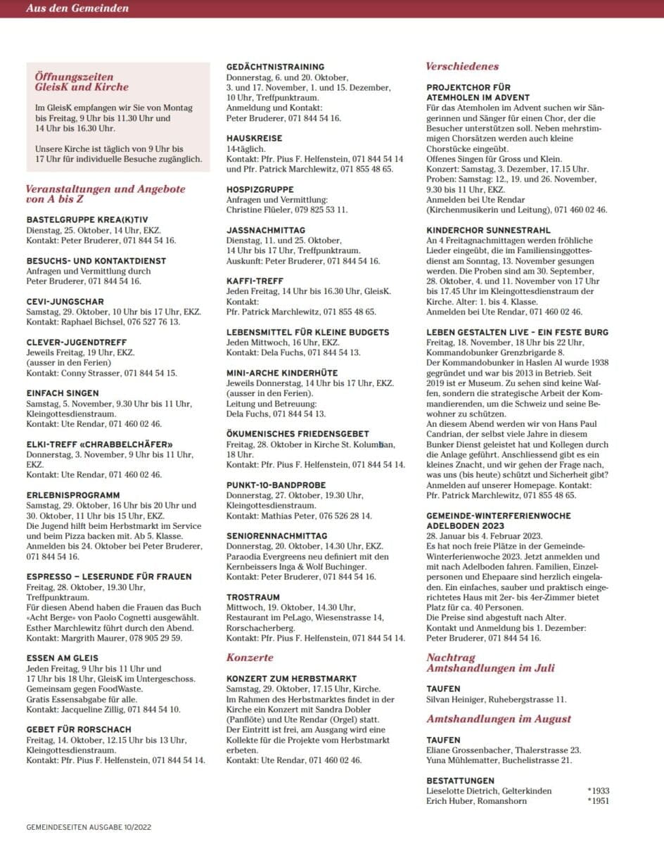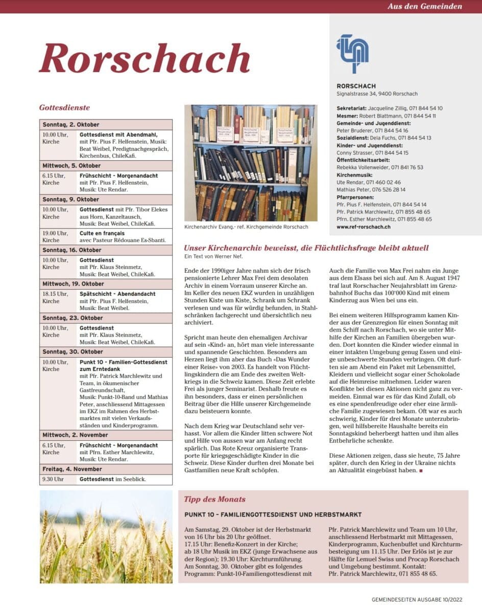 Das Angebot von Ref. Rorschach im Oktober 2022Themen:KulturPartnerRef. RorschachRorschach 1. Oktober 2022 - 05:25Weitere Informationen bekommen Interessierte immer auch hier und hier. Teilen mit: Einen Link per E-Mail an einen Freund senden (Wird in neuem Fenster geöffnet) E-Mail Drucken (Wird in neuem Fenster geöffnet) Drucken Auf Facebook teilen (Wird in neuem Fenster geöffnet) Facebook Auf X teilen (Wird in neuem Fenster geöffnet) X Auf WhatsApp teilen (Wird in neuem Fenster geöffnet) WhatsApp Gefällt mir:Gefällt mir Wird geladen …Newsletter abonnieren Bitte dieses Feld leer lassenBitte wähle, ob Du über jeden neuen Beitrag sofort oder lieber jeden Morgen gegen 9 Uhr eine Zusammenfassung der neusten Beiträge erhalten möchtest.Liste(n) auswählen: Neues vom Echo (Zusammenfassung) Neues vom Echo (Sofortbenachrichtigung) Dieses Feld wird benötigt.Prüfen Sie Ihren Posteingang und den Spamordner, um Ihr Abonnement zu bestätigen.