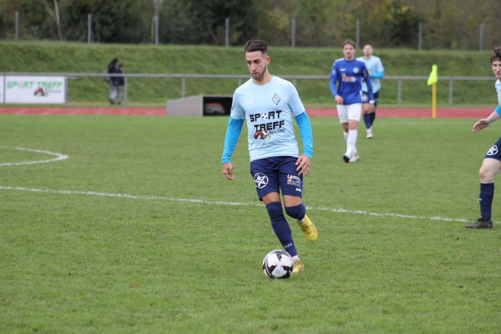 Die Gäste zeigten sich in der ersten halben Stunde als das klar bessere Team. Der gefährliche Diego Cassani brachte wie erwartet viel Unruhe in die Hintermannschaft der Gastgeber. Bereits nach vier Minuten musste Nemanja Babic einen Schuss des Topstürmers zur Ecke abwehren. Eine tolle Direktabnahme von Salvatore Forgia landete am Innenpfosten, traf die Lattenunterkante und sprang wieder ins Feld zurück (19.) Unglaublich. Rorschach-Goldach 17 konnte sich nicht aus der Umklammerung lösen. So kam es wie es kommen musste. Innert sieben Minuten lagen die Gäste mit zwei Toren vorne. Zuerst knallte der ehemalige FC RG 17 Spieler Latif Canoski den Ball unhaltbar ins tiefe Eck (22.). Dann spielte Diego Cassani gegen Torhüter Nemanja Babic seine Klasse aus. Der Torjäger hatte die Geduld, den Goali zu umspielen und ruhig einzuschieben (29.) Kurze Zeit später bekam Oliver Baumann seine erste gute Tormöglichkeit, welche der Stürmer jedoch nicht nutzen konnte (33.). Trainer Olaf Sager wechselte danach den Routinier Claudio Bosshart (vom Ferienstrand direkt auf die Kellen) ein (34.) Dieser brachte sofort wieder die nötige Ruhe ins Team zurück. Dejan Peric rückte von der Innenverteidigung ins Mittelfeld vor, wo der kampfstarke und lauffreudige Arboner wesentlich besser zur Geltung kommt. Einen Eckball von Adrian Morina, versenkte Oliver Baumann noch vor der Pause zum wichtigen Anschlusstreffer (42.)