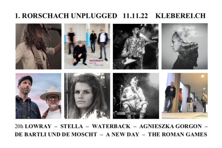 Am Freitagabend findet in der Kleberei zum Saisonschluss das “1. Rorschach Unplugged” statt, bei dem die Bands weitgehend auf elektrische Instrumente verzichten und nur der akustische Sound verstärkt wird. Eintritt frei, Kollekte erwünscht.
