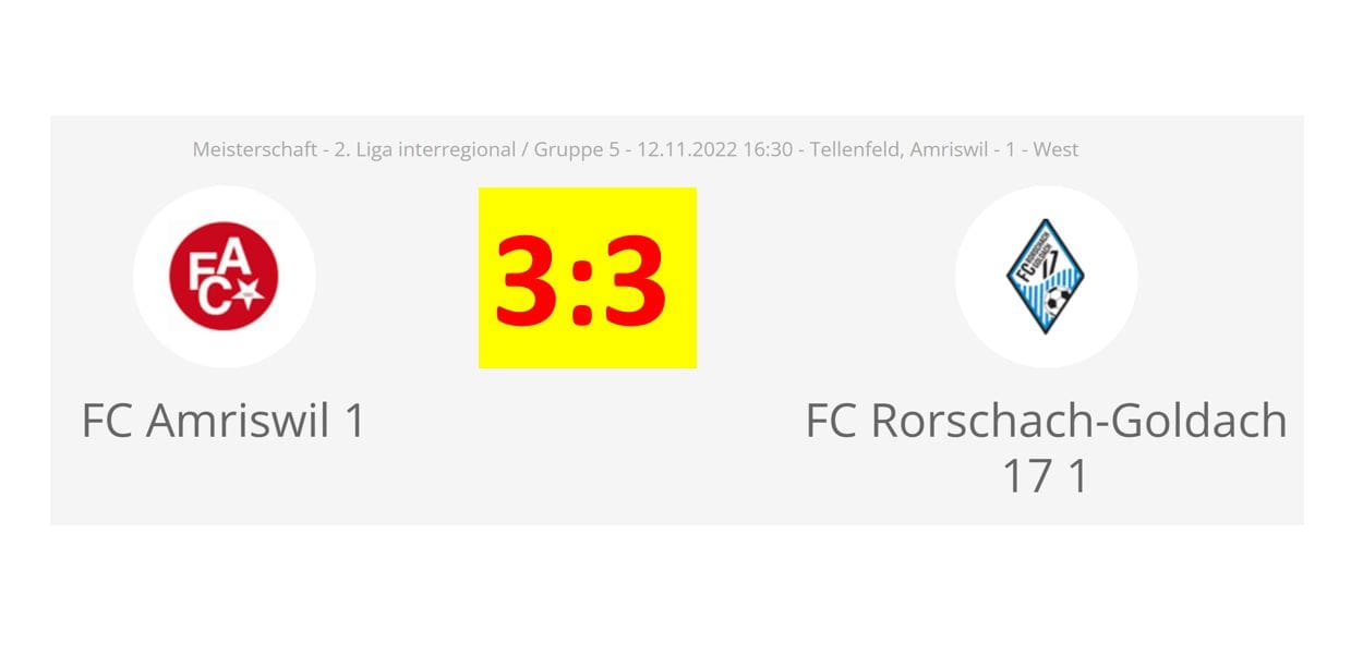 3:3 hiess es heute Nachmittag in Amriswil am Schluss. Die Tore für den FC RG 17 schossen Oli Baumann und Adi Morina zum frühen 0:2. In der 2. Halbzeit war es dann Andrea Lo Re, der mit dem Ausgleich zum 3:3 den einen Auswärtspunkt sicherte. Chancen für einen Sieg wären da gewesen. Der Matchbericht von Pfütz Keel wird nachgereicht.