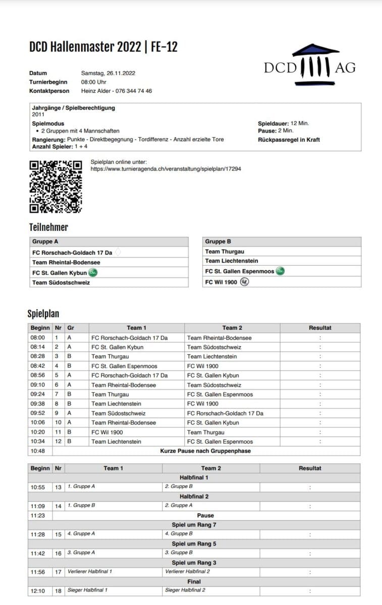 Wer sich für den Juniorinnenfussball begeistert, dürfte an diesem Wochenende (26./27. November) in der Wartegghalle in Goldach auf seine Kosten kommen. Das DCD-Hallenmaster 2022 präsentiert neben zahlreichen Auswahlmannschaften auch Teams der Schweizer Spitzenclubs.