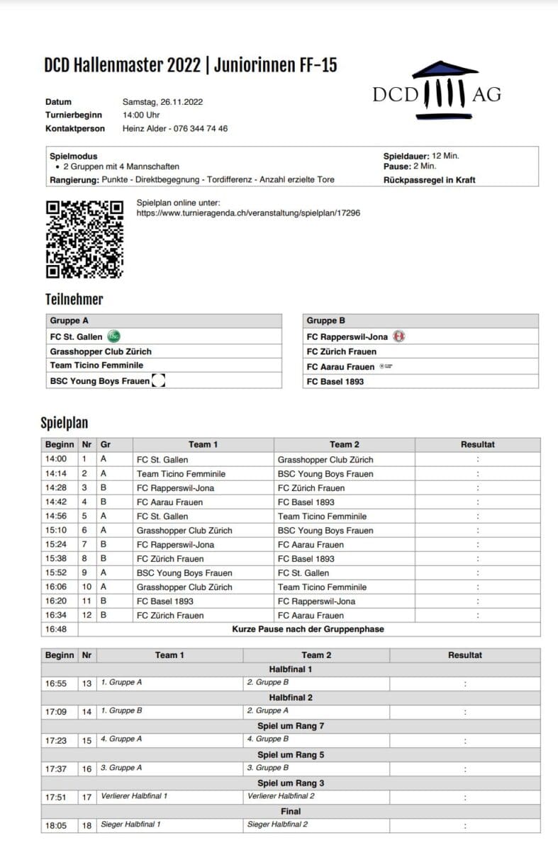 Das Highlight dürfte am Samstagnachmittag das FF15 darstellen, spielen doch die jungen Fussballerinnen aus den Vereinen wie FC Basel, Young Boys Bern Frauen, FC St. Gallen Frauen, FC Aarau, Grasshoppers und FC Zürich um den Turniersieg.