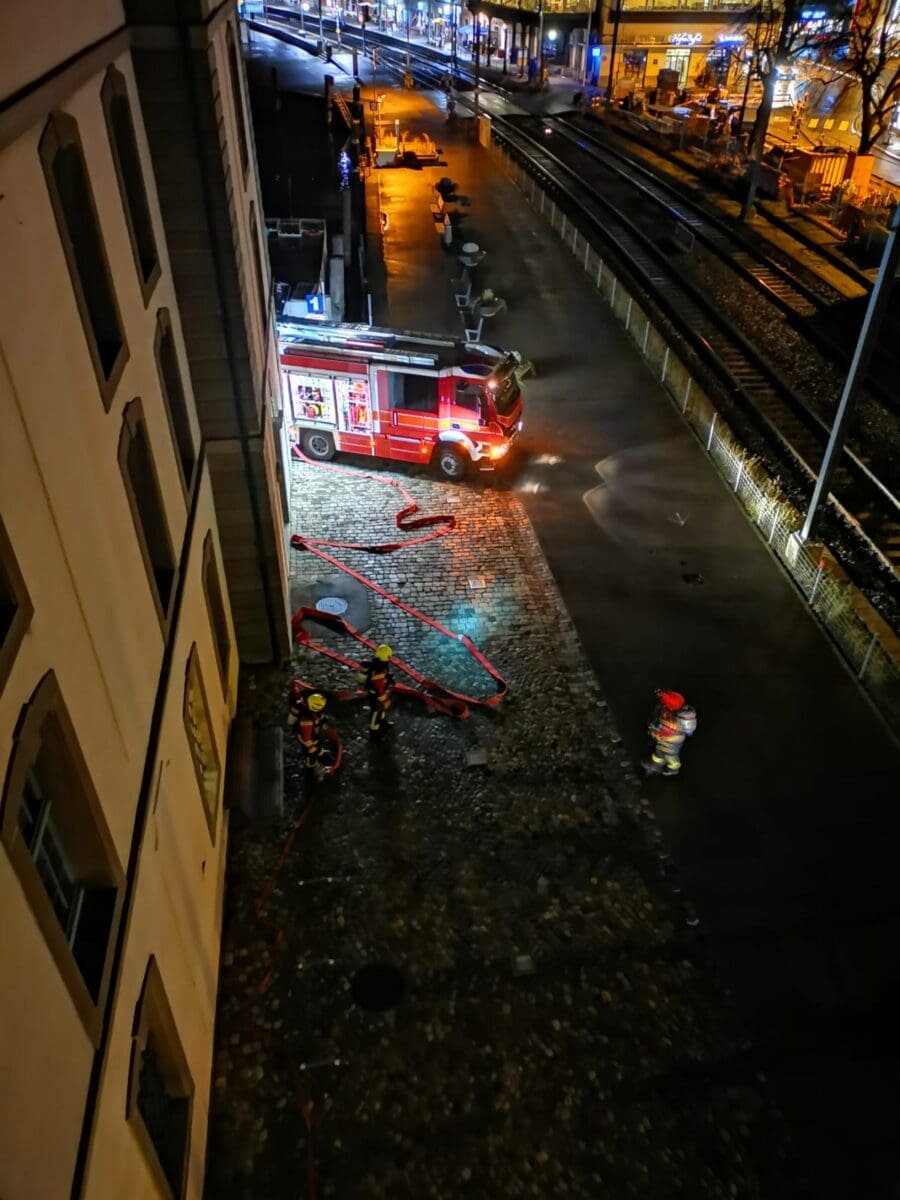 Das Rorschacher Kornhaus ist seit den Stromsparmassnahmen der Stadt Rorschach nachts (ausser die Nordfassade direkt am Hafen) nicht mehr beleuchtet. Das war am letzten Freitagabend nur bedingt richtig. Grund war die Schlussübung der Feuerwehr Rorschach-Rorschacherberg. Feuerwehrfrau Unteroffizier Jacqueline Zillig war mit der Kamera unterwegs und hat nachstehenden Bericht verfasst. Herzlichen Dank.