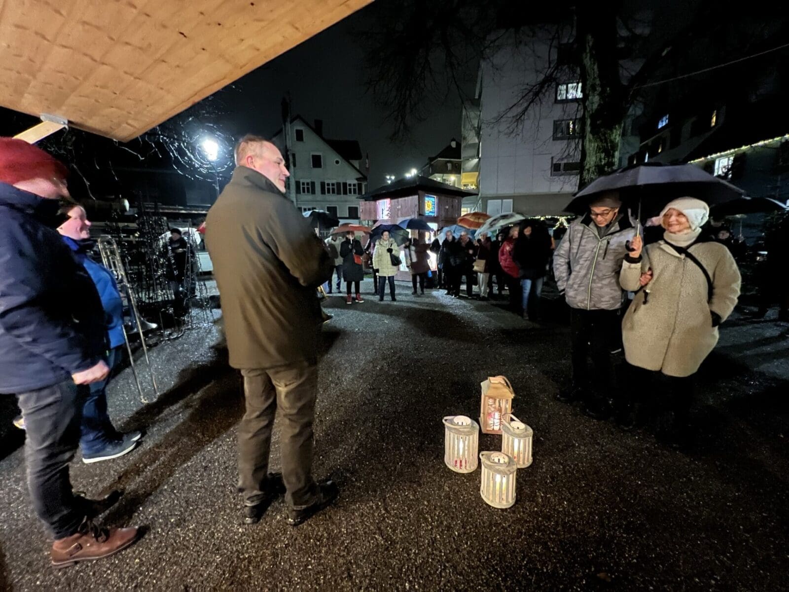Heute Freitag hat sich für das Abendprogramm auf dem Lindenplatz eine Änderung ergeben. Für die erkrankte Barbara Camenzind liest Berthold Specker eine Geschichte. Das Beitragsbild oben zeigt das gestern geöffnete Fenster, welches die Familie Riedener aus Rorschacherberg gestaltet hat. Musikalisch hat das Rheinfels Quartett als Trio aufgespielt und das Patronat haben gestern Rima Innenausbau GmbH, Rorschacherberg/Mörschwil und das Malergeschäft Vito Suozzi, Rorschach und die Multigips AG, Tübach, übernommen. Hier einige Bilder von gestern Abend.