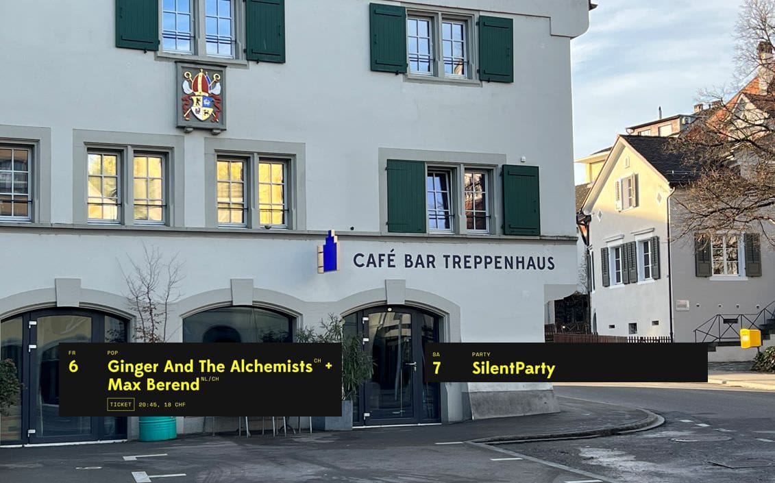 Treppenhaus mit Konzerten & SilentParty ins neue JahrThemen:BeizenKulturRorschachTreppenhaus 2. Januar 2023 - 05:25Am Dreikönigstag gibt es ein Doppelkonzert im Treppenhaus, am Samstag dann die erste SilentParty im neuen Jahr. Infos zum Treppenhaus gibt es immer auch hier und hier.Teilen mit: Einen Link per E-Mail an einen Freund senden (Wird in neuem Fenster geöffnet) E-Mail Drucken (Wird in neuem Fenster geöffnet) Drucken Auf Facebook teilen (Wird in neuem Fenster geöffnet) Facebook Auf X teilen (Wird in neuem Fenster geöffnet) X Auf WhatsApp teilen (Wird in neuem Fenster geöffnet) WhatsApp Gefällt mir:Gefällt mir Wird geladen …Newsletter abonnieren Bitte dieses Feld leer lassenBitte wähle, ob Du über jeden neuen Beitrag sofort oder lieber jeden Morgen gegen 9 Uhr eine Zusammenfassung der neusten Beiträge erhalten möchtest.Liste(n) auswählen: Neues vom Echo (Zusammenfassung) Neues vom Echo (Sofortbenachrichtigung) Dieses Feld wird benötigt.Prüfen Sie Ihren Posteingang und den Spamordner, um Ihr Abonnement zu bestätigen.