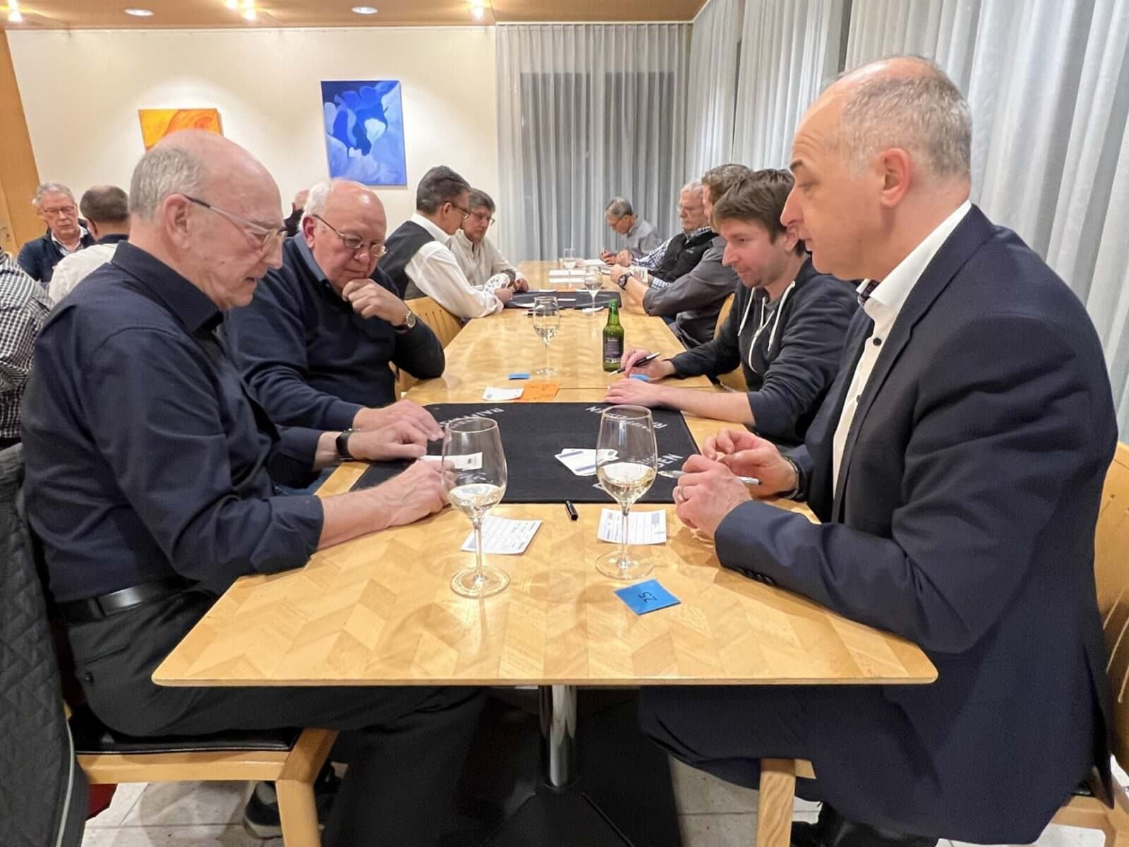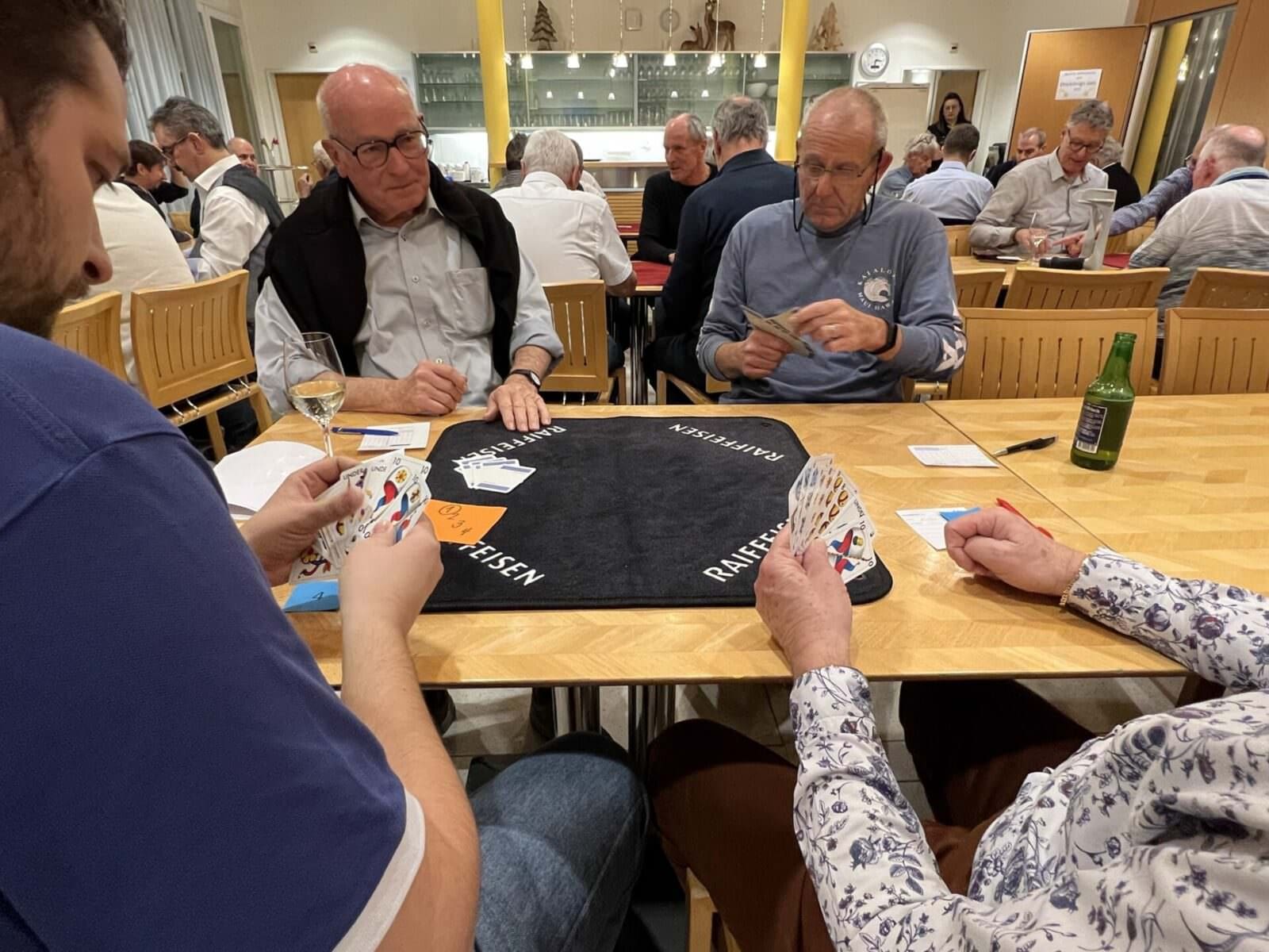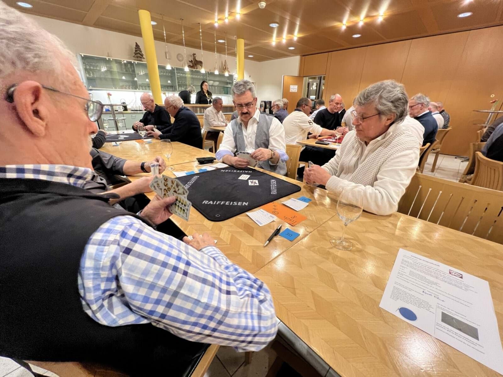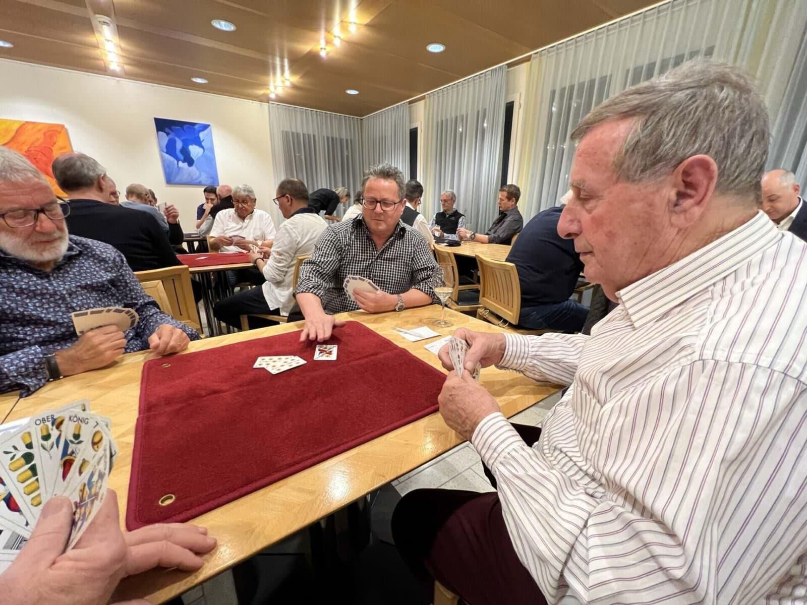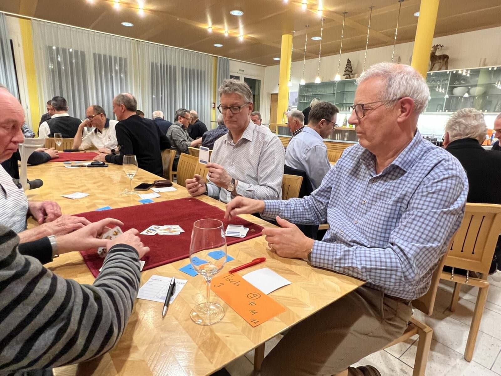 Nach 2 Jahren Coronapause wurde am Freitagabend im Dörfli des HPV Rorschach wieder einmal zünftig gejasst. Die Dreikönigs-Jassgesellschaft hat zum insgesamt zum 71. Jasstreff aufgerufen und über 30 Jasser folgten der Einladung. Das Beitragsbild oben zeigt von links nach rechts sind die fünf Erstplatzierten abgebildet (3x dritter Platz): Hans Leuenberger (3.Rang mit 4117 Punkten), Hubert Kühne (3. Rang mit 4117 Punkten) und Felix Rothenberger (3. Rang mit 4117 Punkten), den Tagessieger Rudolf Keller (1. Rang mit 4323 Punkten) und Hans Heule, der mit 4127 Punkten Rang 2 belegte. Hier einige Schnappschüsse von Freitagabend.
