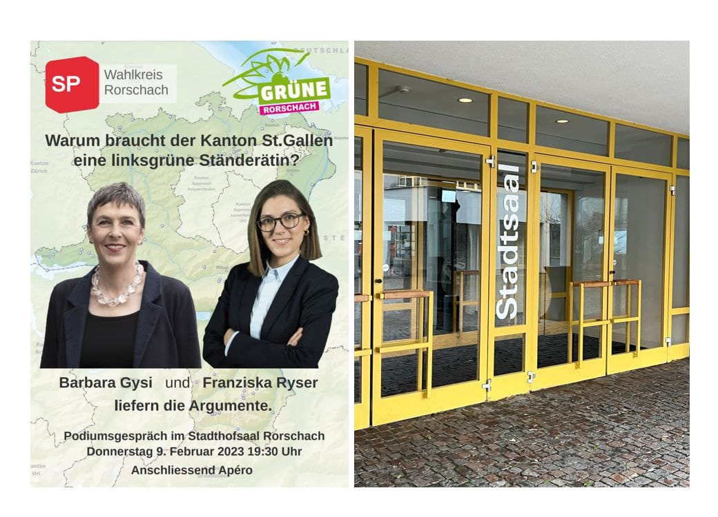 SP und die GRÜNEN der Region Rorschach laden am Donnerstag, 9. Februar 2023 zu einem Podiumsgespräch in den Rorschacher Stadthofsaal ein.