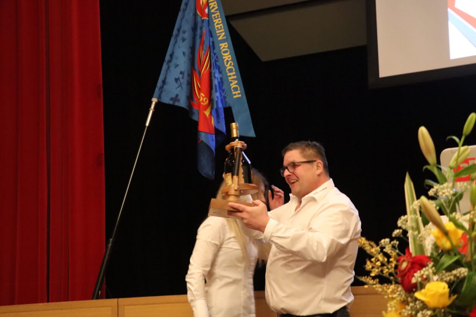Die Feuerwehr Rorschach-Rorschacherberg hat aktuell einen Bestand von 101 AdF. Das sind 8 weniger als noch vor einem Jahr. Marco Todeschini: „Speziell erwähnen möchte ich Leutnant Christian Bichsel, der mit 30 aktiven Dienstjahren nicht in den Feuerwehrruhestand übertritt, sondern seine grosse Einsatzbereitschaft mit seinem breiten Fachwissen weiterhin bei seinem Arbeitgeber Amcor, die eine eigene Betriebsfeuerwehr betreibt, zur Verfügung stellt. Leutnant Christian Bichsel trat am 1. Januar 1993 in die ehemalige Feuerwehr Rorschacherberg ein. Am 1. Januar 1994, nach bloss einem Jahr wurde Christian zum Korporal ernannt und anschliessend durfte er 16 Jahre lang Erfahrung sammeln bis er am 1. Januar 2010, zum Wachtmeister befördert wurde. Ein Jahr später erfolgte die Beförderung zum Leutnant, die er bis zum Ausscheiden innehatte. Ich durfte Christian als sehr zuverlässigen und kompetenten Feuerwehrmann mit einem grossen Fachwissen kennenlernen. Christian wollte bereits mit 25 Dienstjahren aufhören, nach einem Gespräch war er bereit, nochmals fünf Jahre anzuhängen, bis sein Nachfolger so weit war. Leider kam es mit einem unerwarteten Wegzug des Designierten nicht mehr dazu. Zusätzlich übernahm er noch freiwillig die Leitung des Verkehrsdienstzuges von einem austretenden Kameraden. Ich bedanke mich bei Christian für den geleisteten ausserordentlichen Dienst zum Wohle der Bevölkerung und wünsche ihm für die Zukunft ruhige Stunden, viel Gesundheit und alles Gute.“