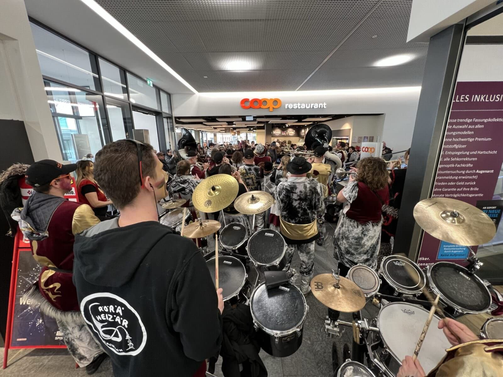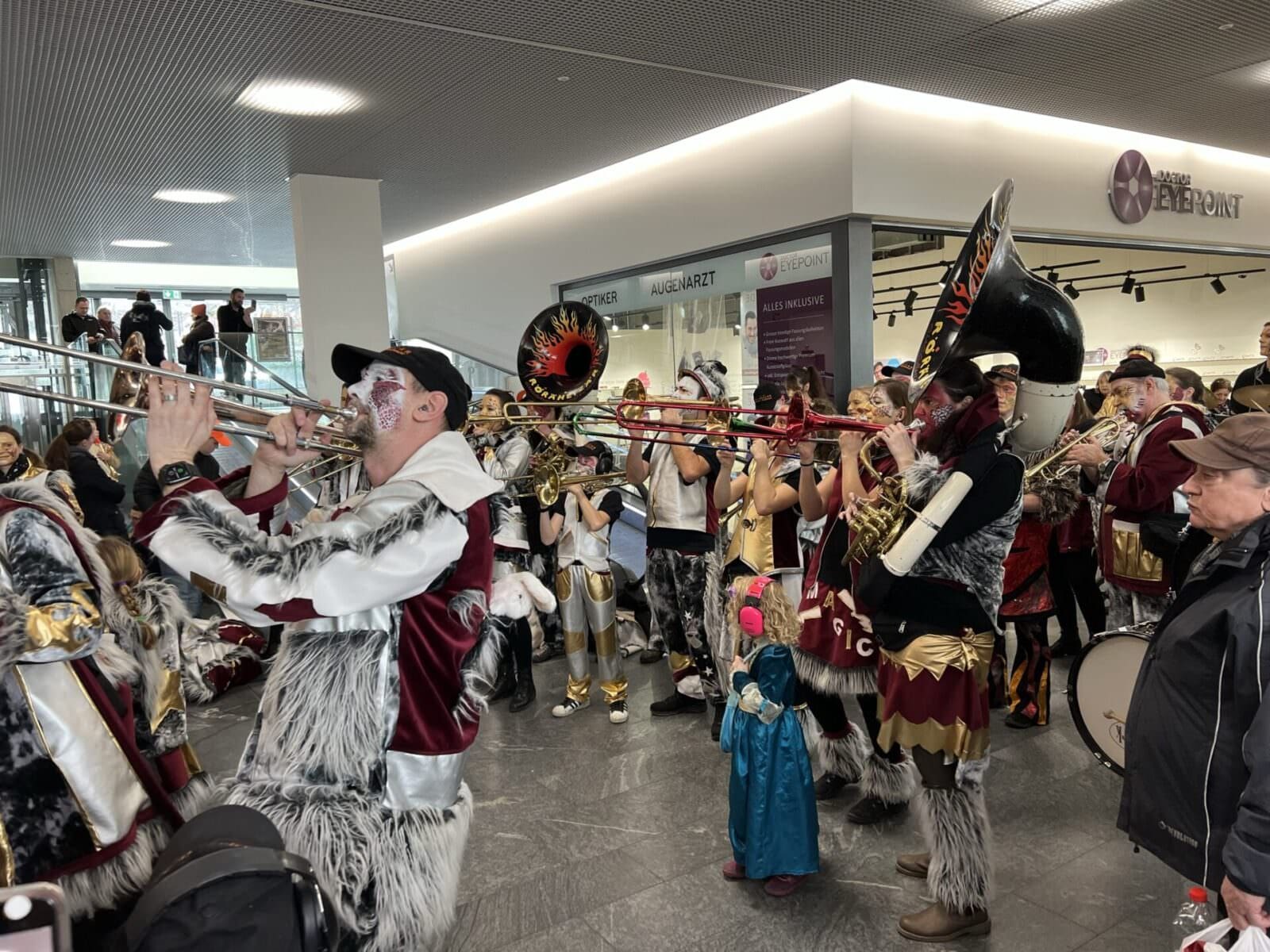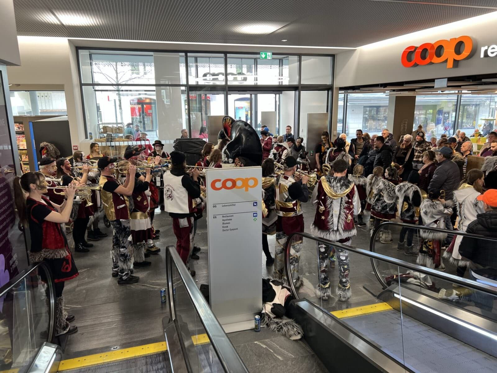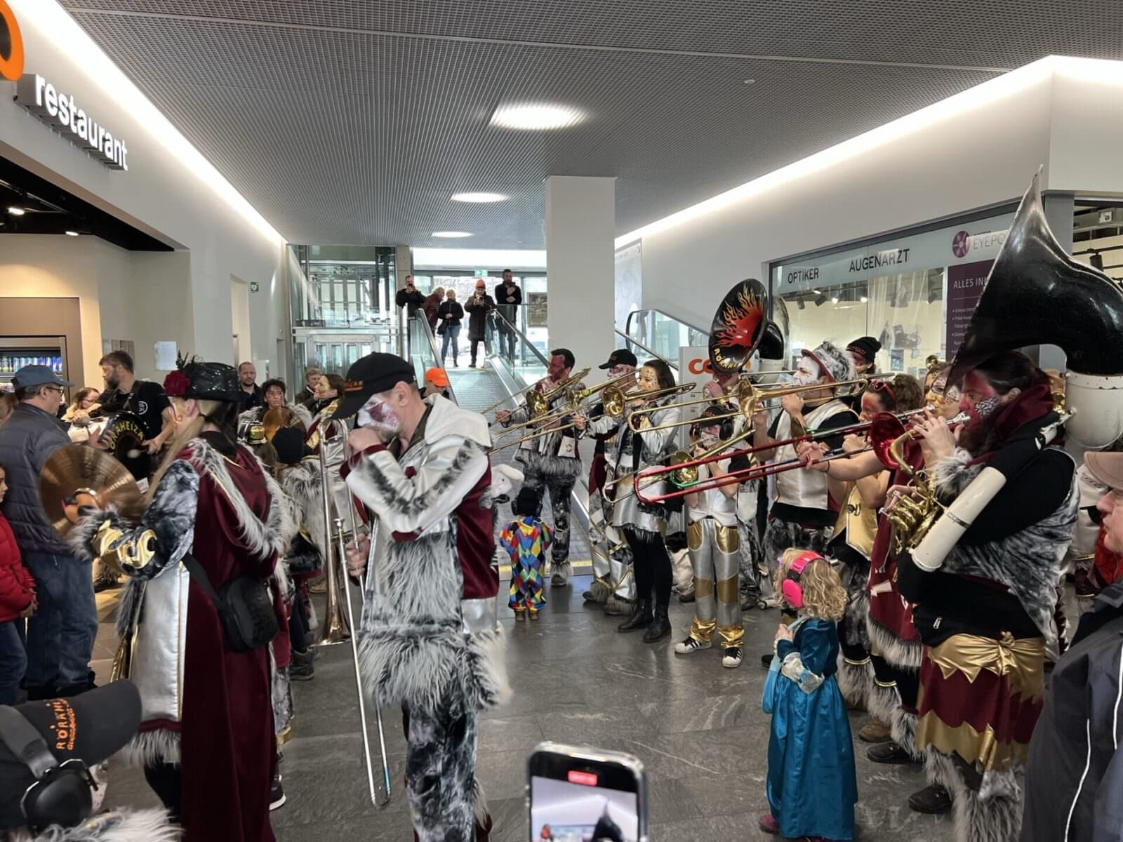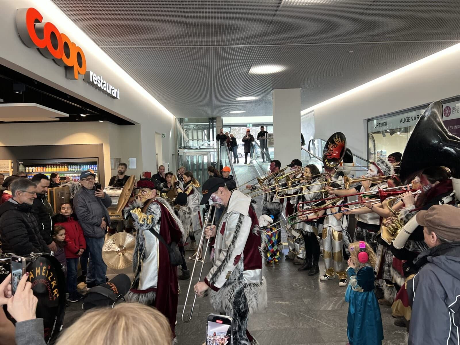 Hier ein paar Impressionen von gestern Nachmittag, aufgenommen im Coop und am Kindermaskenball im Stadthof. Und das Video oben beweist, was passiert, wenn die Röräheizär die Rolltreppe zur Showbühne umfunktionieren…