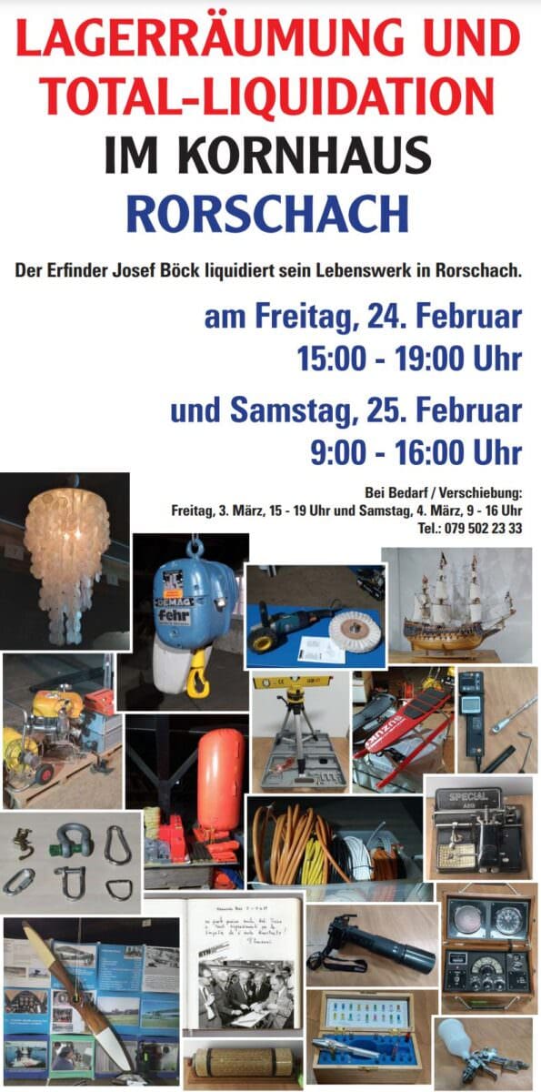 Heute Samstag ist Tag 2 der Liquidation des Lebenswerks von Josef Böck. Hier Bilder von gestern Nachmittag. Es ist aber unsicher, was davon heute noch verfügbar ist oder nicht. Man muss einfach mal mit dem Lift in den 4. Stock (der Liftboy ist dabei…) und selber schauen.
