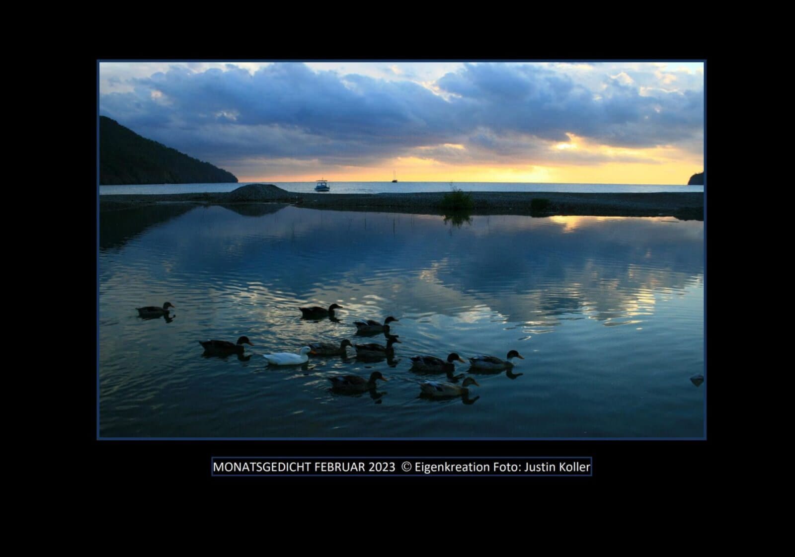 „Liebe Lyrikfreund*innen. Eigentlich hätte ich gerne ein Wintergedicht geschickt, aber in diesem Winter lag ja nur kurz Schnee. Poesie-Verderber! Stimmung und Text und Bild sollten ja zusammen passen – so denke ich mir. Hoffentlich bringt der März noch einmal zünftiges Winterwetter. Dann werde ich es schicken. Schon ein komischer Wunsch, aber dann subito in den Frühling, wenn man wählen darf. Der Text von heute stammt von einem bekannten Dichter aus einem anderen Kulturraum. Seine Geburtsstadt wurde auch schon von Erdbeben heimgesucht“, schreibt Justin Koller für das Februargedicht 2023.