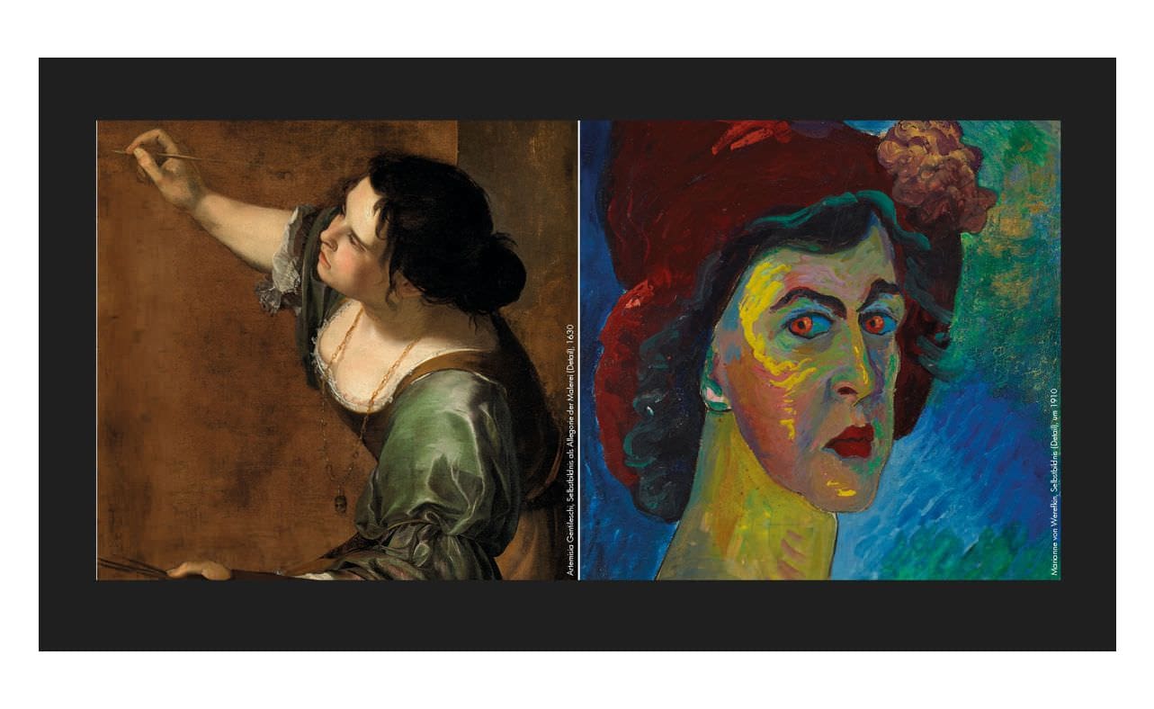 Bildnachweise: Artemisia Gentileschi, Selbstbildnis als Allegorie der Malerei (Detail), 1630 | Marianne von Werefkin, Selbstbildnis (Detail), um 1910. (Text/Beitragsbild: pd würth mb)