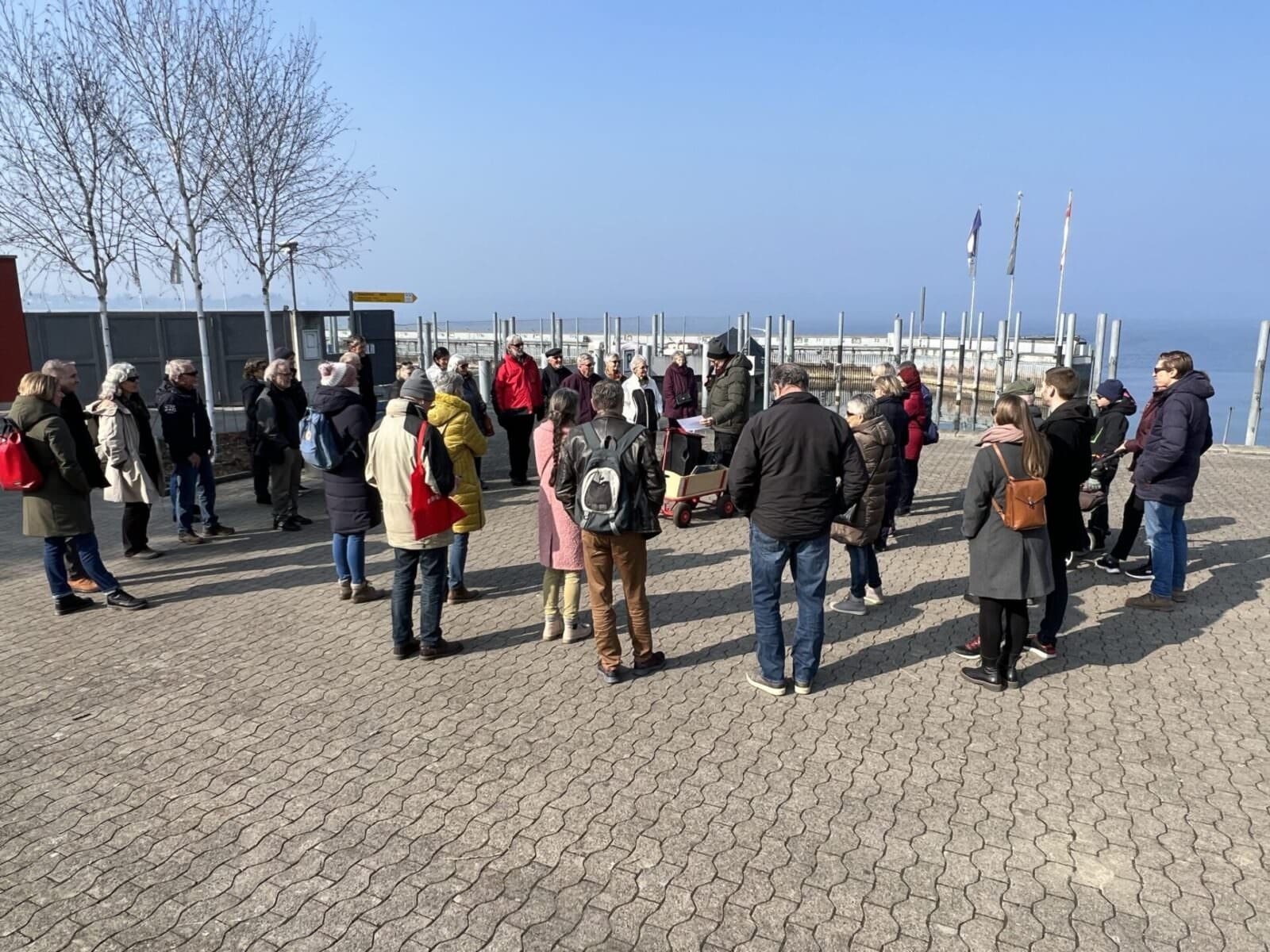Über 40 Personen haben sich am Samstagnachmittag an der Rorschacher Seepromenade zusammen mit Richi Lehner auf den Weg gemacht, um ganz markante Punkte am Seeufer anzupeilen. Diese hatten einen direkten Bezug zur grossen Seegfrörni, welche vor genau 60 Jahren Heerscharen von Menschen nach Rorschach pilgern liess. Wer damals live dabei sein konnte wird das sowieso nicht vergessen. Und wenn 500’000’000 m2 Eisfläche schon mal da liegen, kann es auch nicht erstaunen, wenn sich darum viele Geschichten angesammelt haben. Und genau um diese ging es am Samstagmittag. Hat Spass gemacht, sich zu erinnern, als man noch ganz jung war. Hier einige Schnappschüsse davon.