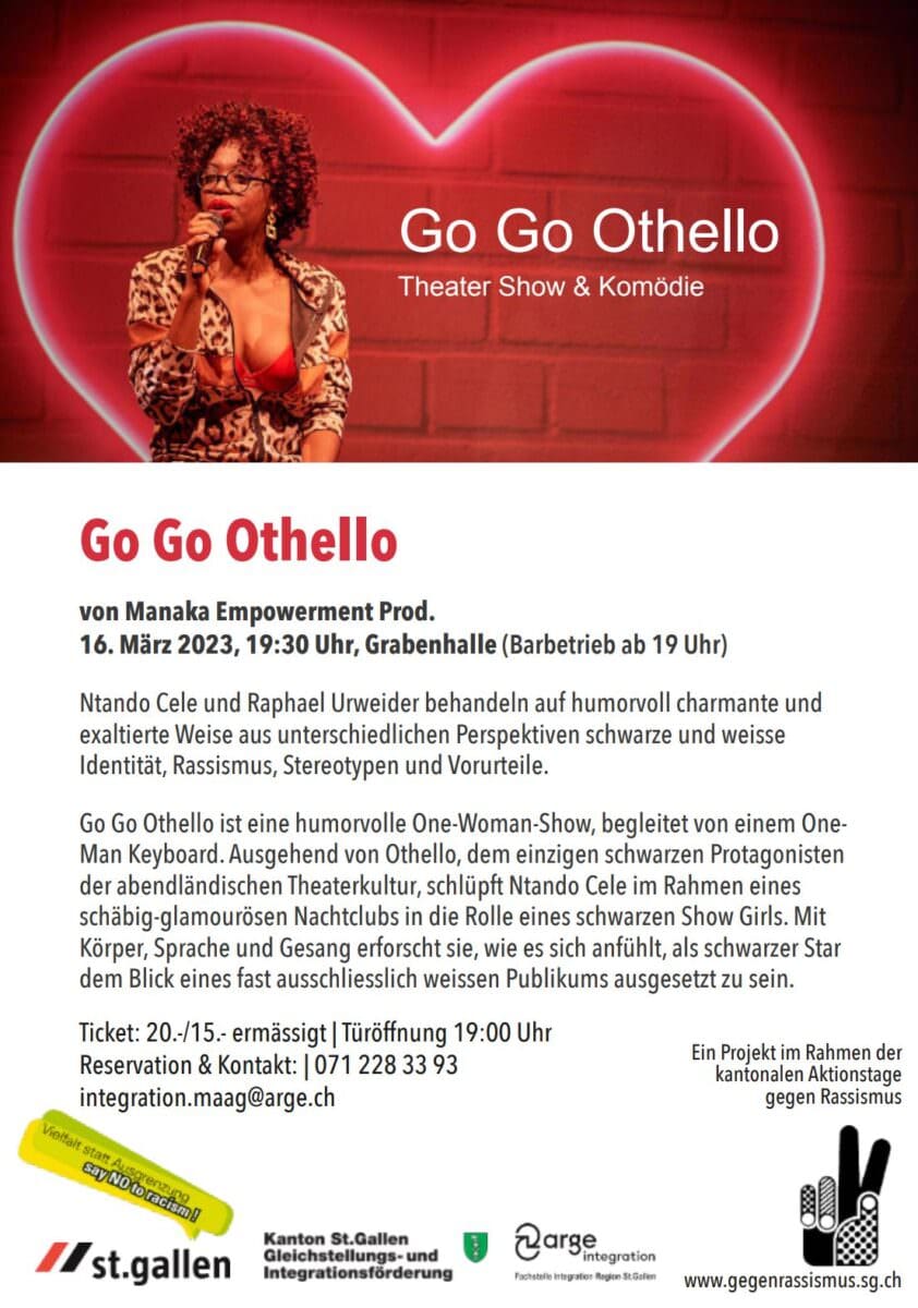 Im Rahmen der St.Galler Aktionstage gegen Rassismus findet am Donnerstag, 16. März 2023, in der Grabenhalle in St.Gallen „Go Go Othello – Shakespeare im Nachtclub mit Ntando Cele“ statt. Nachstehenden Text haben die Initiant:innen verfasst.
