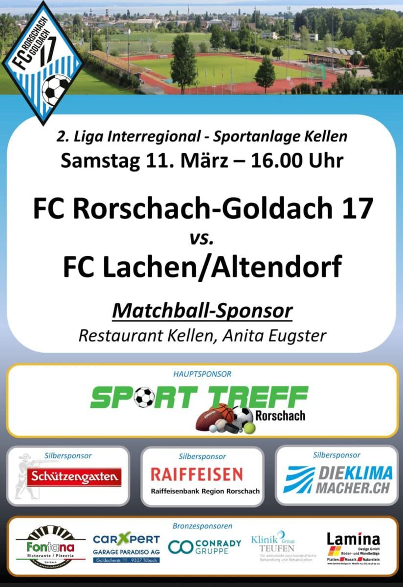 Mit dem morgigen Meisterschaftsspiel der 2. Liga Interregional starten die Fussballer des FC Rorschach-Goldach 17 auf der Sportanlage Kellen in die Rückrunde. Zu Gast wird der FC Lachen/Altendorf SZ sein. Nachstehende Vorschau hat Pfütz Keel geschrieben.