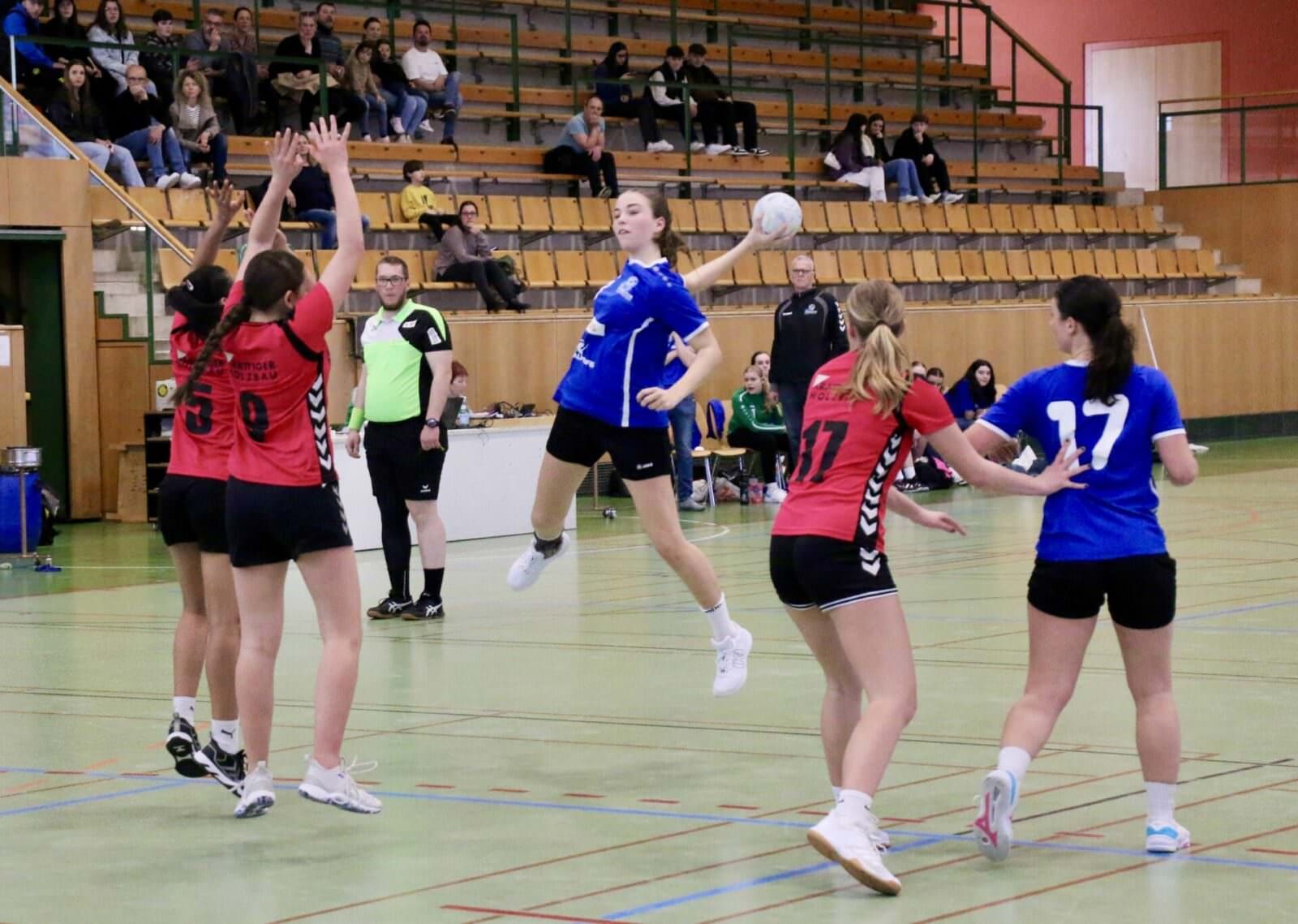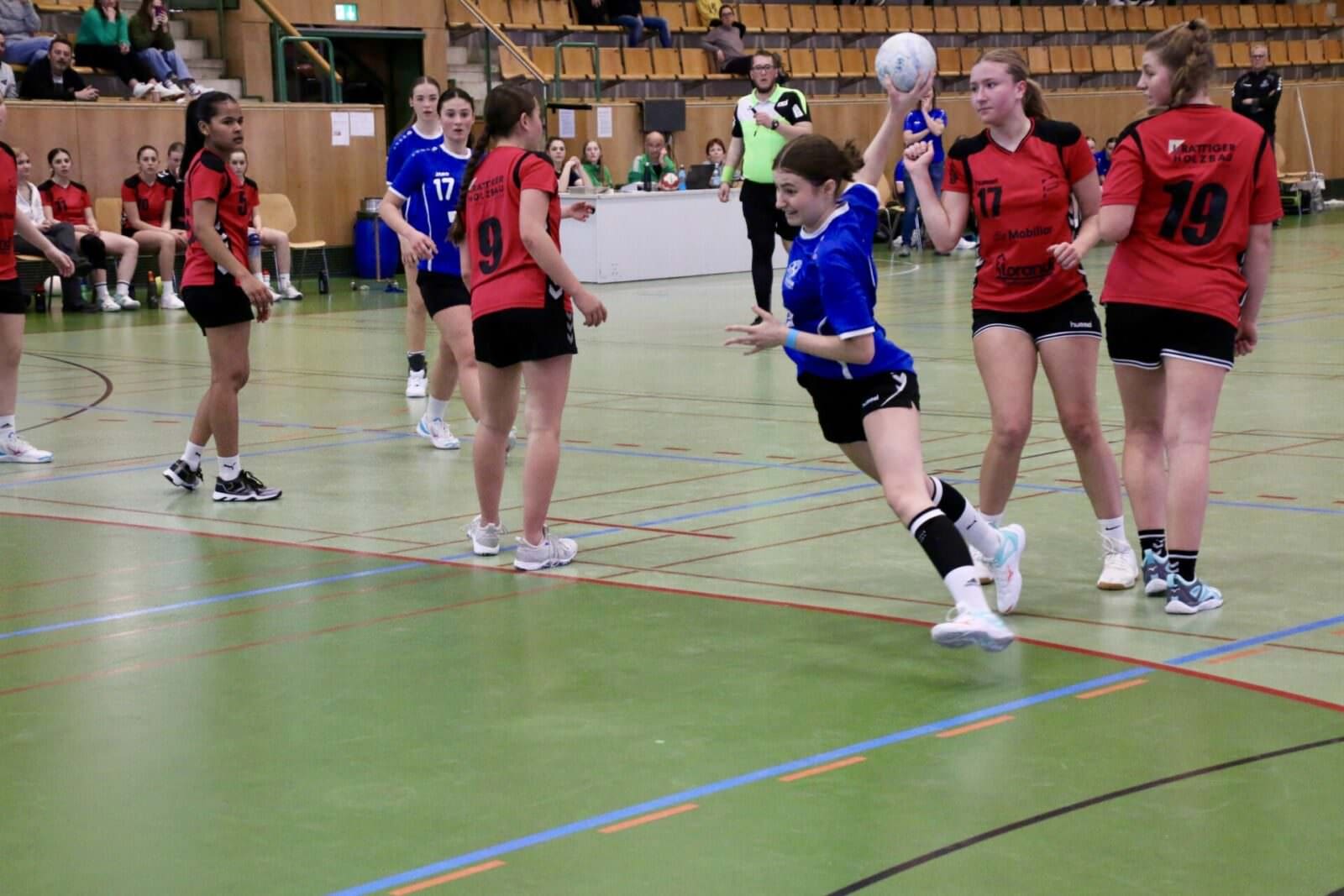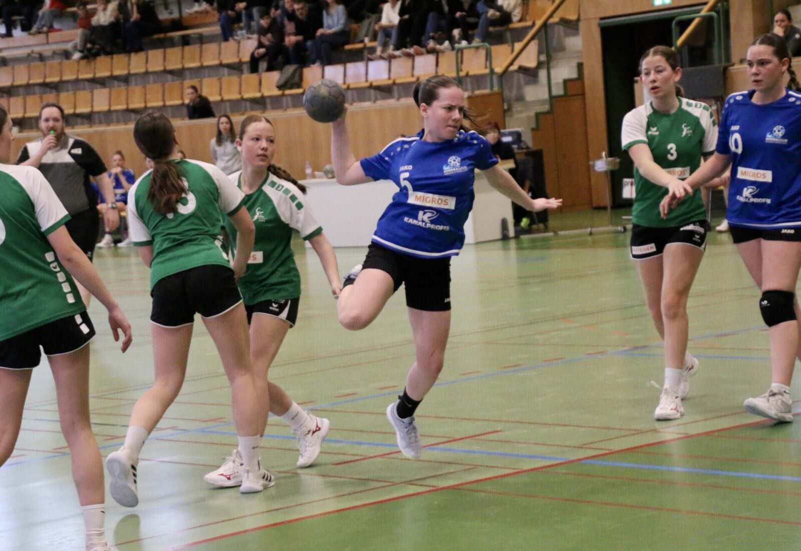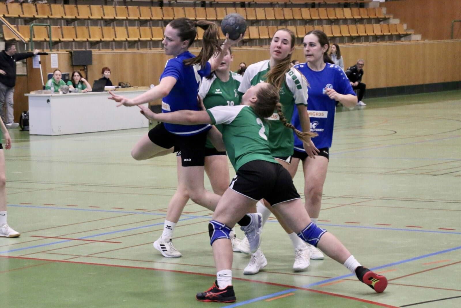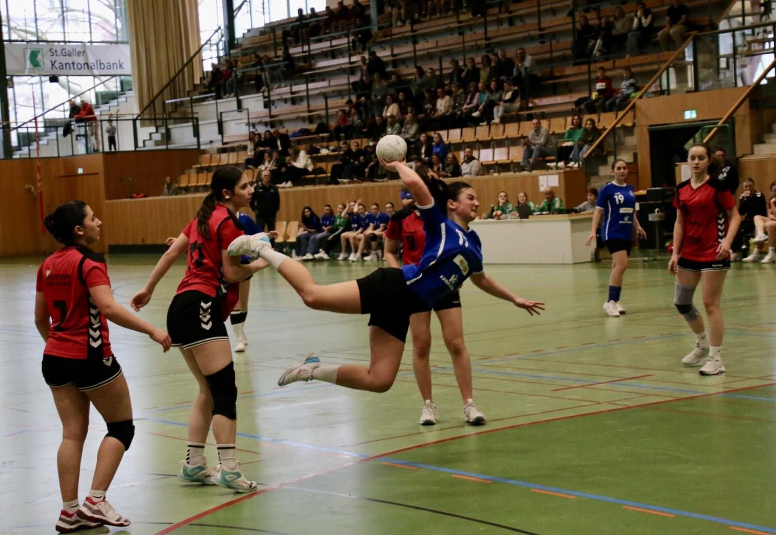 Auch die FU18 traf im Final auf einen bekannten Gegner. Noch vor Wochenfrist hatte man den HC Amriswil in der Meisterschaft ganz knapp besiegt. Hier war es die erste Hälfte der Partie, die das Ensemble des HC Goldach-Rorschach in gutem Licht erscheinen liess. Da war viel Siegeswille zu erkennen. In Angriff und Verteidigung wurde viel und gut gelaufen. Die Pässe kamen präzise an, man stiess gekonnt in die freien Lücken. Die Juniorinnen liessen sich im ersten Viertel des Spiels auch durch einen 2-Tore-Rückstand nicht aus der Ruhe bringen, standen in der Defensive weiterhin kompakt und erspielten sich im Angriff geduldig beste Abschlusschancen. Einziger Mangel: Immer, wenn es nach Führung roch, holte man sich eine Zweiminutenstrafe ab oder münzte beste Angriffe nicht in Tore um. So liefen GoRo’s Juniorinnen immer einem 1 – 2 Tore Rückstand hinterher, Ausgleich- oder Führungstreffer wollte trotz grossem Einsatz nie gelingen. Kurz vor der Pause erhöhte Amriswil auf 13:10 Toren und gab damit den Gegnerinnen eine Denkaufgabe.