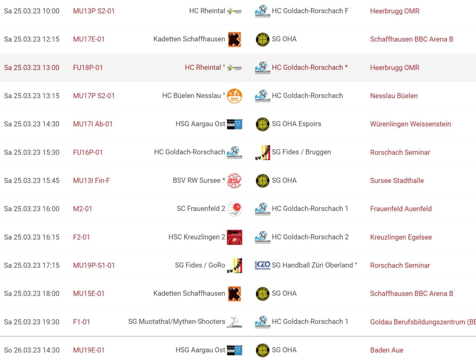 HC GoRo: Beide Fanionteams spielen auswärtsThemen:HC GoRo 25. März 2023 - 05:25Das Damen 1 (Beitragsbild) spielen heute ab 19.30 Uhr in Goldau gegen die SG Muotathal/Mythen-Shooters und das Herren 1 ab 16 Uhr in Frauenfeld. Unten die Gesamtübersicht aller Partien mit HC GoRo-Beteiligung.Teilen mit: Klicken, um einem Freund einen Link per E-Mail zu senden (Wird in neuem Fenster geöffnet) E-Mail Klicken zum Ausdrucken (Wird in neuem Fenster geöffnet) Drucken Klick, um auf Facebook zu teilen (Wird in neuem Fenster geöffnet) Facebook Klicke, um auf X zu teilen (Wird in neuem Fenster geöffnet) X Klicken, um auf WhatsApp zu teilen (Wird in neuem Fenster geöffnet) WhatsApp Gefällt mir:Gefällt mir Wird geladen …Newsletter abonnieren Bitte dieses Feld leer lassenBitte wähle, ob Du über jeden neuen Beitrag sofort oder lieber jeden Morgen gegen 9 Uhr eine Zusammenfassung der neusten Beiträge erhalten möchtest.Liste(n) auswählen: Neues vom Echo (Zusammenfassung) Neues vom Echo (Sofortbenachrichtigung) Dieses Feld wird benötigt.Prüfen Sie Ihren Posteingang und den Spamordner, um Ihr Abonnement zu bestätigen.