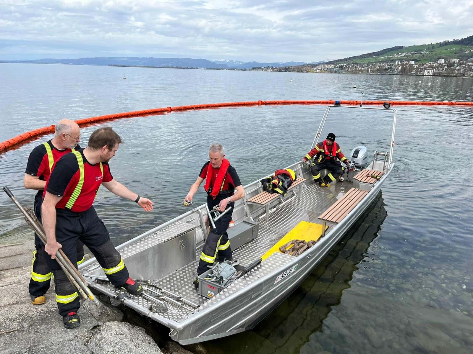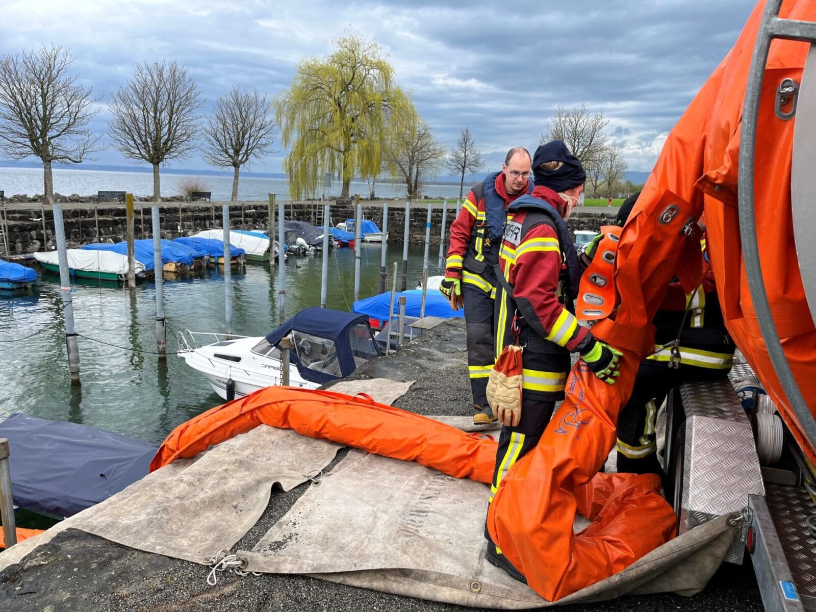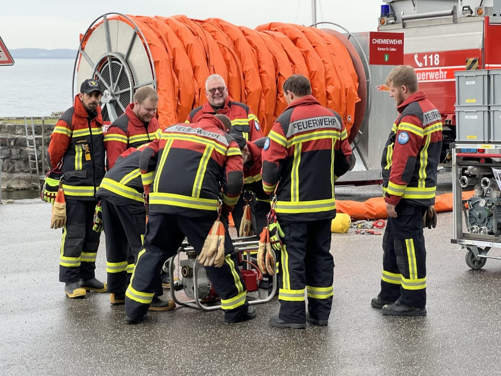 Am Mittwoch und Donnerstag dieser Woche haben 34 Angehörige der Feuerwehr Rorschach-Rorschacherberg einen Weiterbildungskurs im Bereich Gewässerschutz absolviert. Das Handling der verschiedenen Arbeitsabläufe wurde in Rorschach (beim Würth Haus) und in Goldach (Rietli) geprobt und verfeinert. Gestern Nachmittag wurde dann eine Hafensperre beim Kleinhafen hinter dem Würth Haus aufgebaut. Hier einige Bilder davon.
