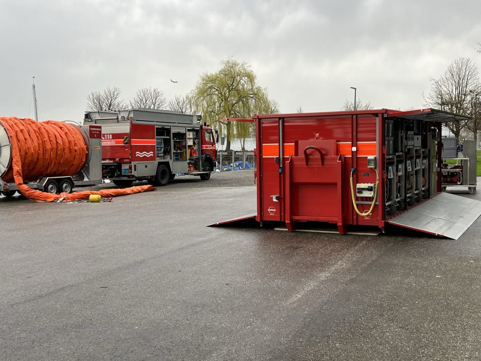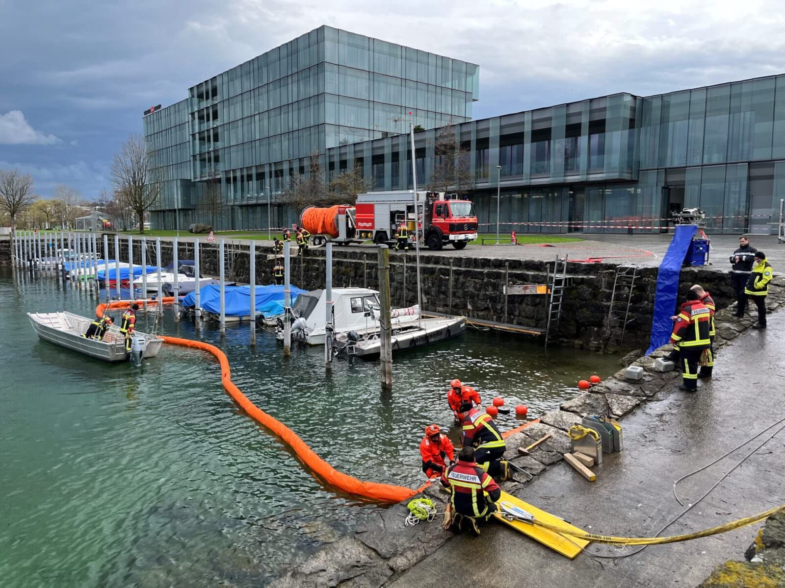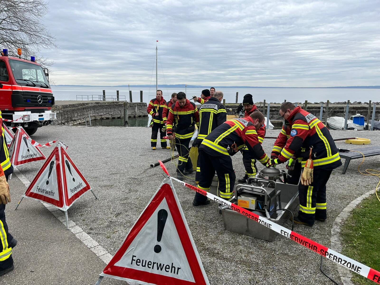 Am Mittwoch und Donnerstag dieser Woche haben 34 Angehörige der Feuerwehr Rorschach-Rorschacherberg einen Weiterbildungskurs im Bereich Gewässerschutz absolviert. Das Handling der verschiedenen Arbeitsabläufe wurde in Rorschach (beim Würth Haus) und in Goldach (Rietli) geprobt und verfeinert. Gestern Nachmittag wurde dann eine Hafensperre beim Kleinhafen hinter dem Würth Haus aufgebaut. Hier einige Bilder davon.