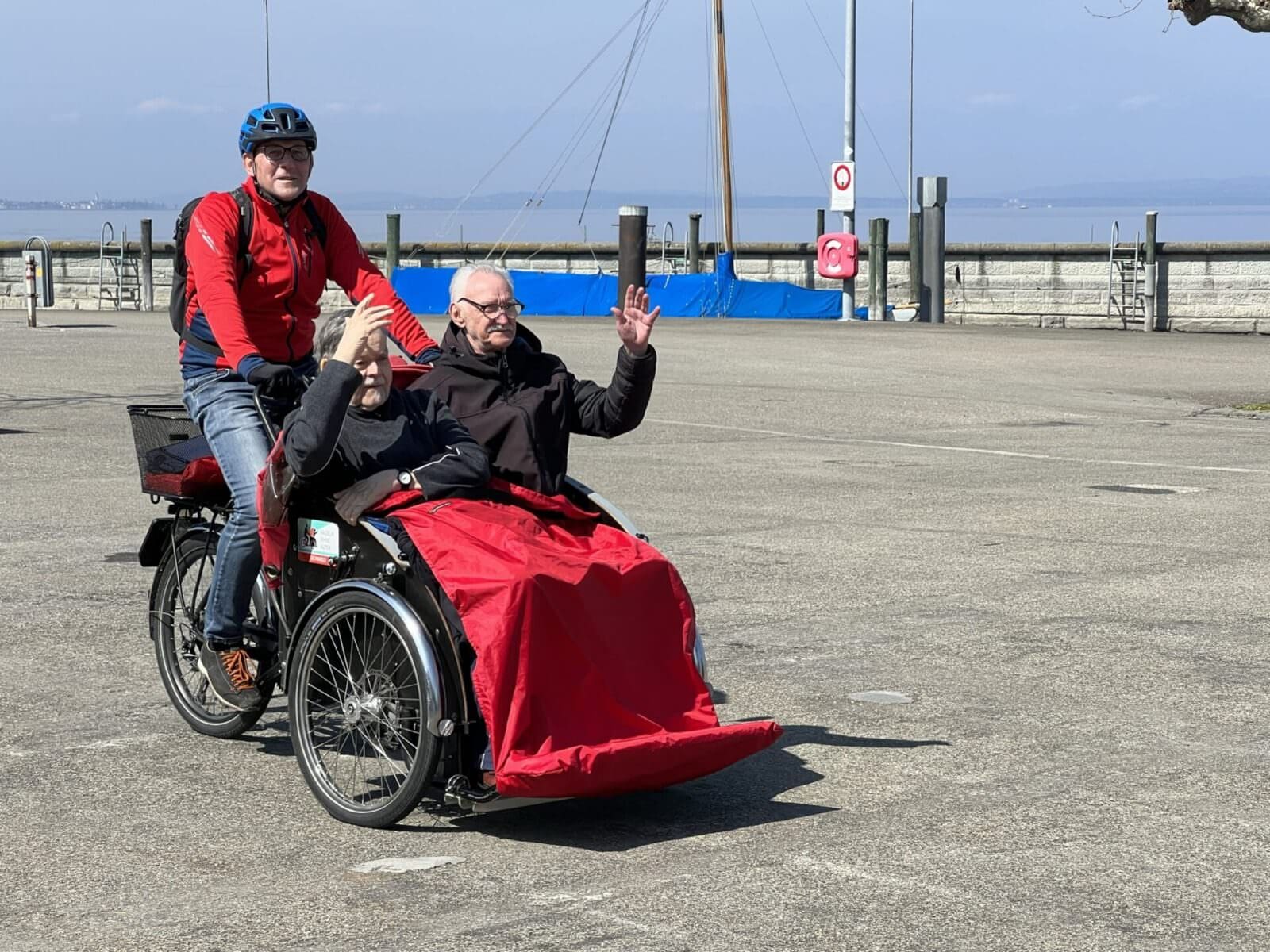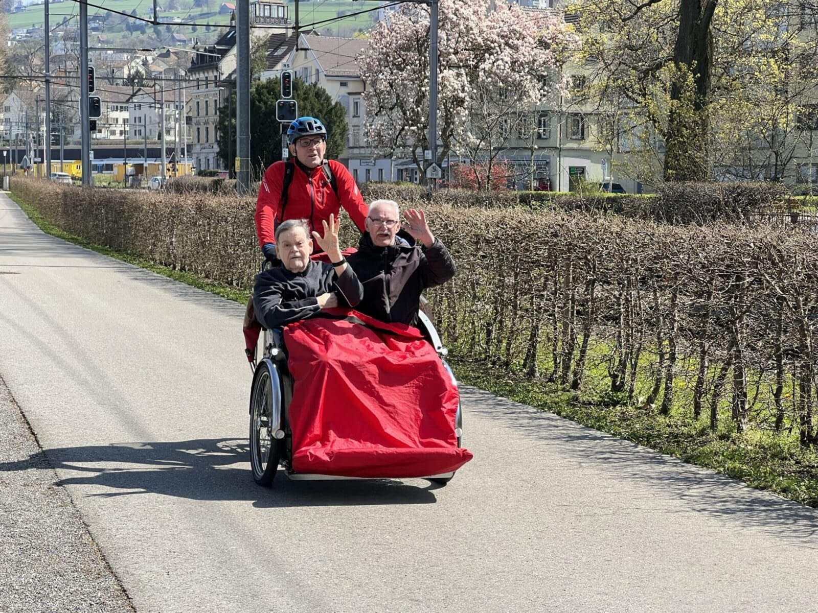 Die Bewohnenden im Altersheim von Rorschach haben jetzt jeden Donnerstag die Möglichkeit, so eine Rikscha-Fahrt zu unternehmen. Und mit steigenden Temperaturen wird von diesem Angebot der Katholischen Kirche der Region Rorschach sicher viel Gebrauch gemacht. Und dass das Ganze Spass macht beweisen die Bilder.