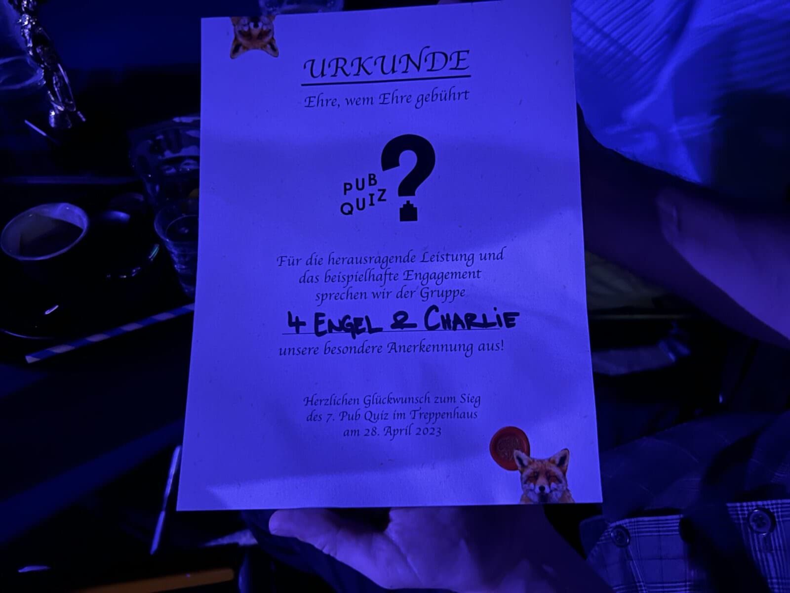 Pub Quiz im Treppenhaus heisst auch immer voller Konzertsaal. So auch gestern Abend und irgendwie freut man sich schon auf das Openair Pub Quiz am 5. August 2023, wenn mehr Platz zum Denken vorhanden ist… Hier ein paar Schnappschüsse von gestern. Gewonnen hat das Team „4 Engel & Charlie“, die auf dem Beitragsbild um die Wette jubeln.