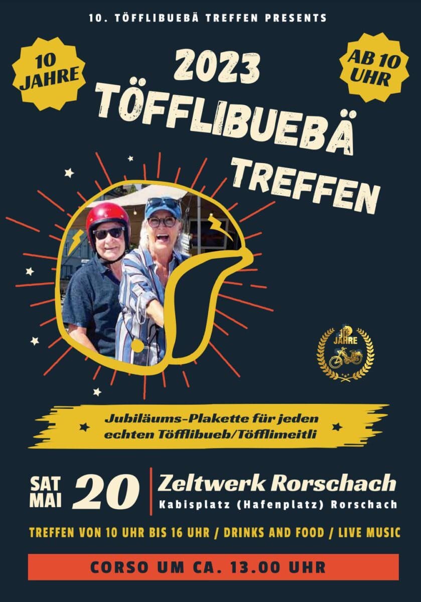 Das erste Töfflibuebä Treff 2014 startete auf dem Lindenplatz, vor dem Schilte Sechsi, mit 70 Töffli. Im 2015 waren es bereits 120. Dies führte dazu, dass der Anlass im 2016 das erste Mal auf dem Chabisplatz stattfinden durfte. Seit 2020 ist der Anlass nun eingebettet in das Zelt-Werk Festival und erfreut sich auch in diesem Rahmen grosser Beliebtheit und so konnten im 2021 über 150 und im 2022 an die 200 Töfflibuebä und -meitli, begrüsst werden.