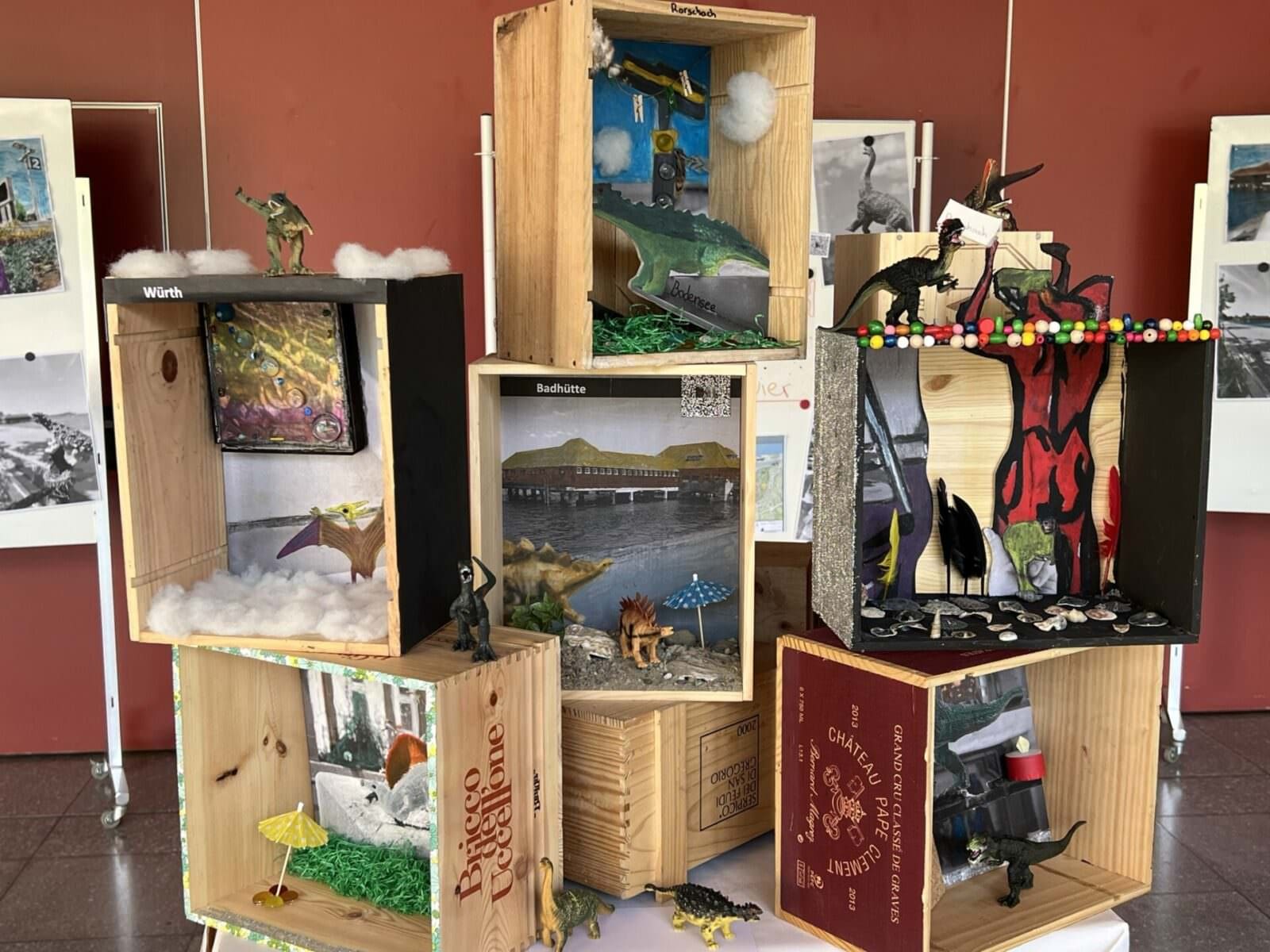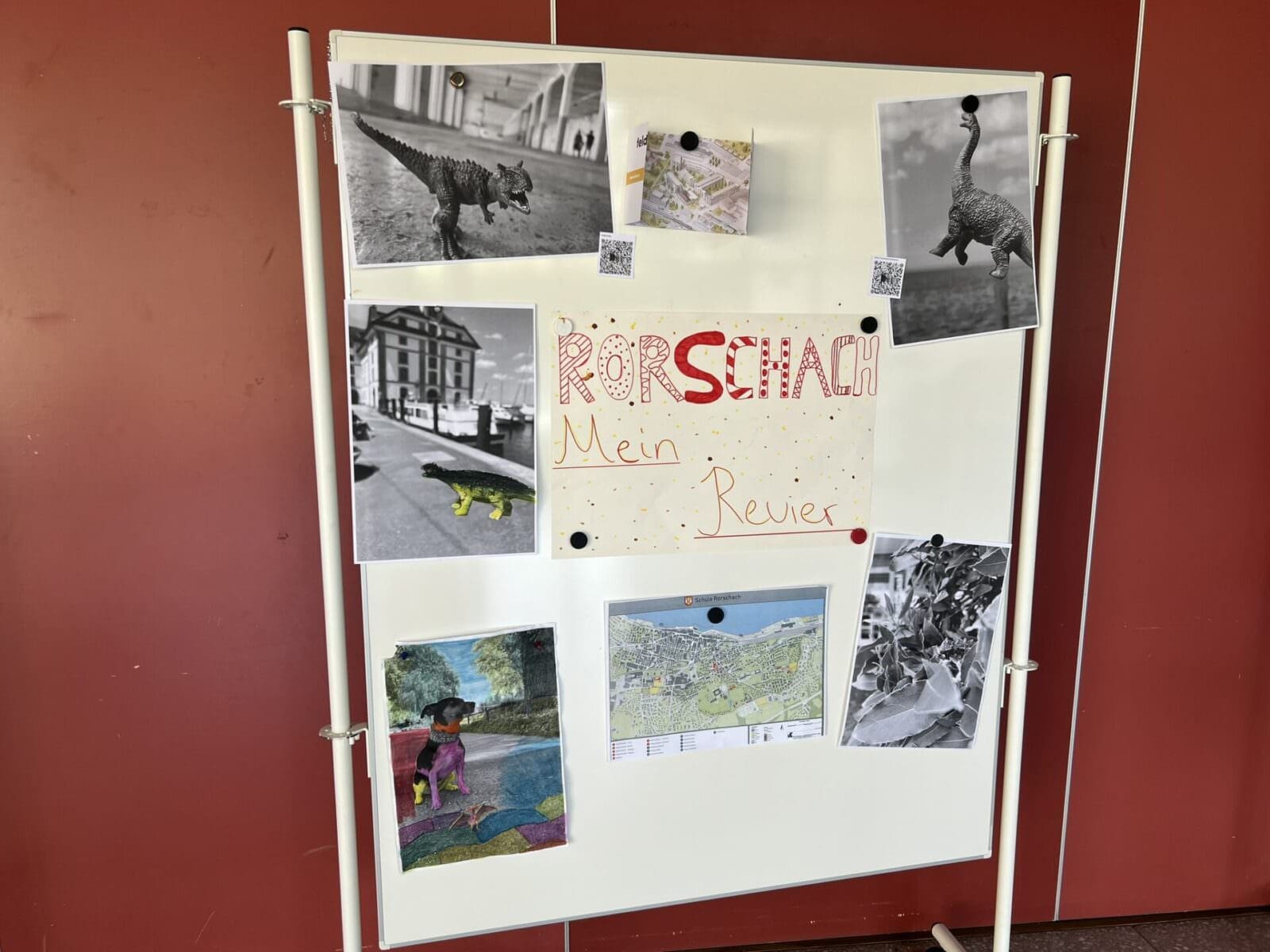 Im Sekschulhaus Kreuzacker absolvierten die Schülerinnen und Schüler diese Woche eine sogenannte Sonderwoche. In einzelnen Gruppen konnten sie ihre Kreativität unter Beweis stellen. Heute präsentierten sie mit viel Stolz ihre Werke. Eine Gruppe hat die Dinosaurier in den Rorschacher Alltag gestellt, eine andere hat am Computer getüftelt und mit Bildbearbeitungsprogrammen eigene Fabelbilder erstellt. Hier einige Schnappschüsse dieser gelungenen Arbeiten.