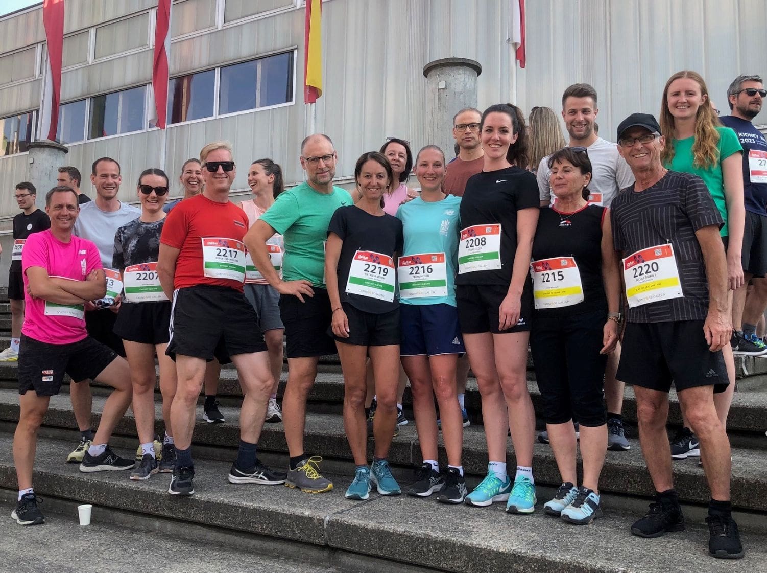 Das Beitragsbild zeigt 16 motivierte Läuferinnen und Läufer am B2Run in St. Gallen. Die Schule Rorschach erzielte am Firmenlauf in St. Gallen den dritten Rang in der Kategorie „Kleinunternehmungen“.