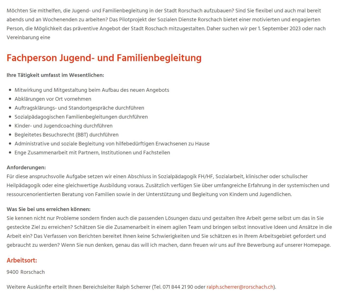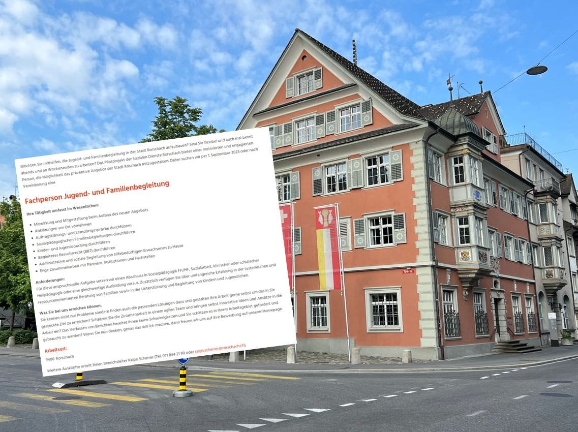 Hier das Inserat für eine Fachperson in der Jugend- und Familienbegleitung. Eine Gesamtübersicht über alle offenen Stellen finden Interessierte hier.