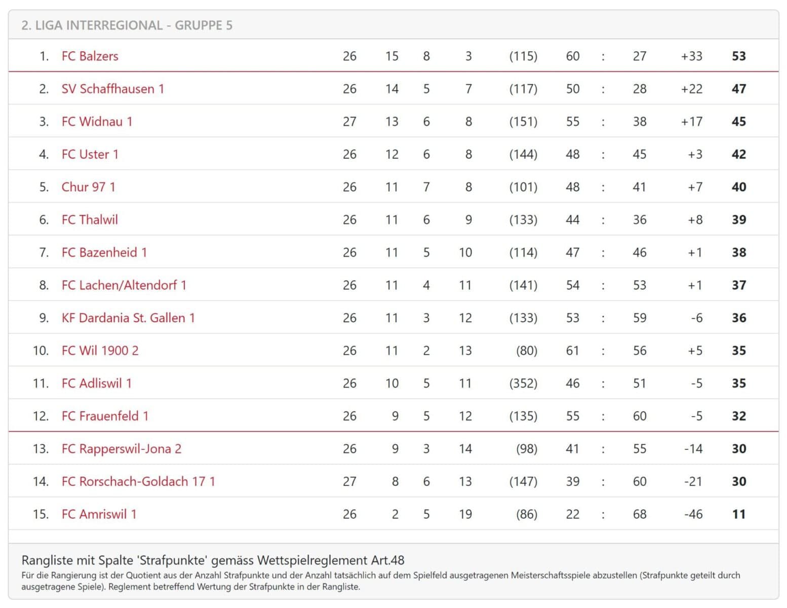 Anders ist die Gefühlslage beim (noch) 2. Liga Interregional-Team. 15er-Gruppen bringen es mit sich, dass immer ein Team spielfrei ist. Heute ist es der FC RG 17. Unten die aktuellen Paarungen und Tabelle. So gegen 20 Uhr dürfte man da schlauer sein…
