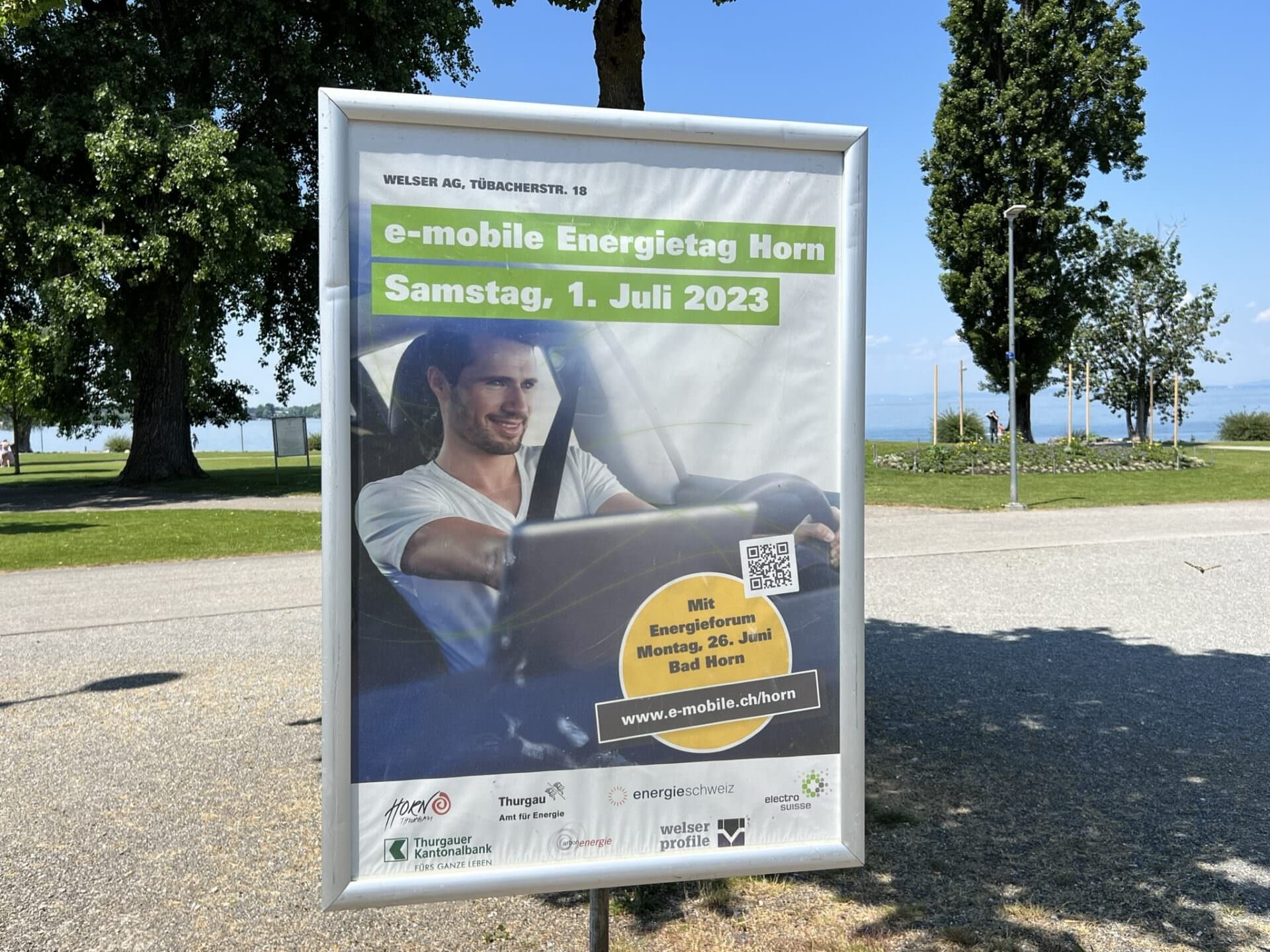 Zudem gibt es auf dem Vorplatz eine Ausstellung mit einigen überraschenden Fahrzeugen. Und natürlich einen Apéro. Die Ausstellung ist ab 17 Uhr offen, das Forum beginnt um 19.00 Uhr. Details s. www.e-mobile.ch/horn. In Rorschach sind auch die Plakate für die beiden Folgeveranstaltungen in Horn nicht zu übersehen.