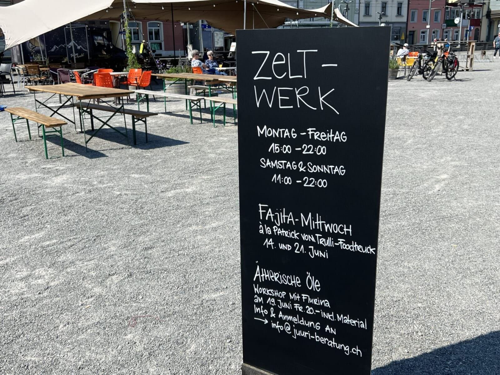 Heute Mittwoch gibt es im Zelt-Werk am Rorschacher Hafen verschiedenste Fajitas – frisch von Patrick zubereitet. Der Trulli-Foodtruck ist nochmals Mittwoch nächste und übernächste Woche vor Ort. Der morgige Donnerstag gehört der fünfköpfigen Band Angry Zeta aus Buenos Aires, die das Zelt sicher zum Beben bringen.