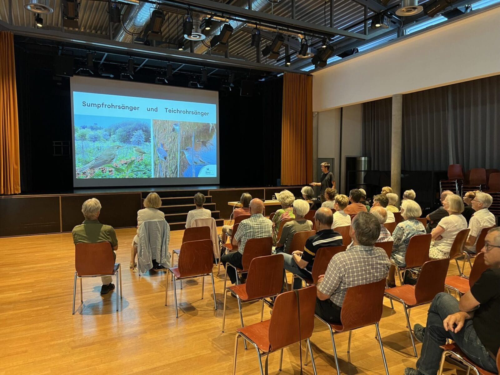 Am Donnerstagabend hat BirdLife Goldach in die Aula zu einem spannenden Vortrag eingeladen. Trotz wunderbarem Wetter durfte Präsident Joe Bischof rund 40 Interessierte begrüssen und Tom Bischof verstand es ausgezeichnet, den kleinen braunen Vogel – der Sumpfrohrsänger ist Vogel des Jahres 2023 – ins Zentrum zu stellen. Selbst die Hobby-Ornithologen bekamen eine Fülle von spannenden Infos. Hier ein paar Schnappschüsse von diesem Anlass. Mehr zum Verein BirdLife Goldach finden Interessierte hier.