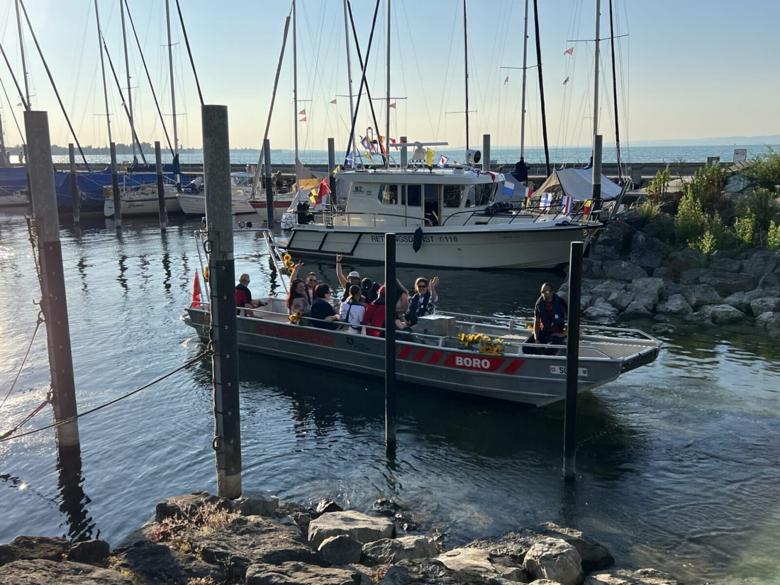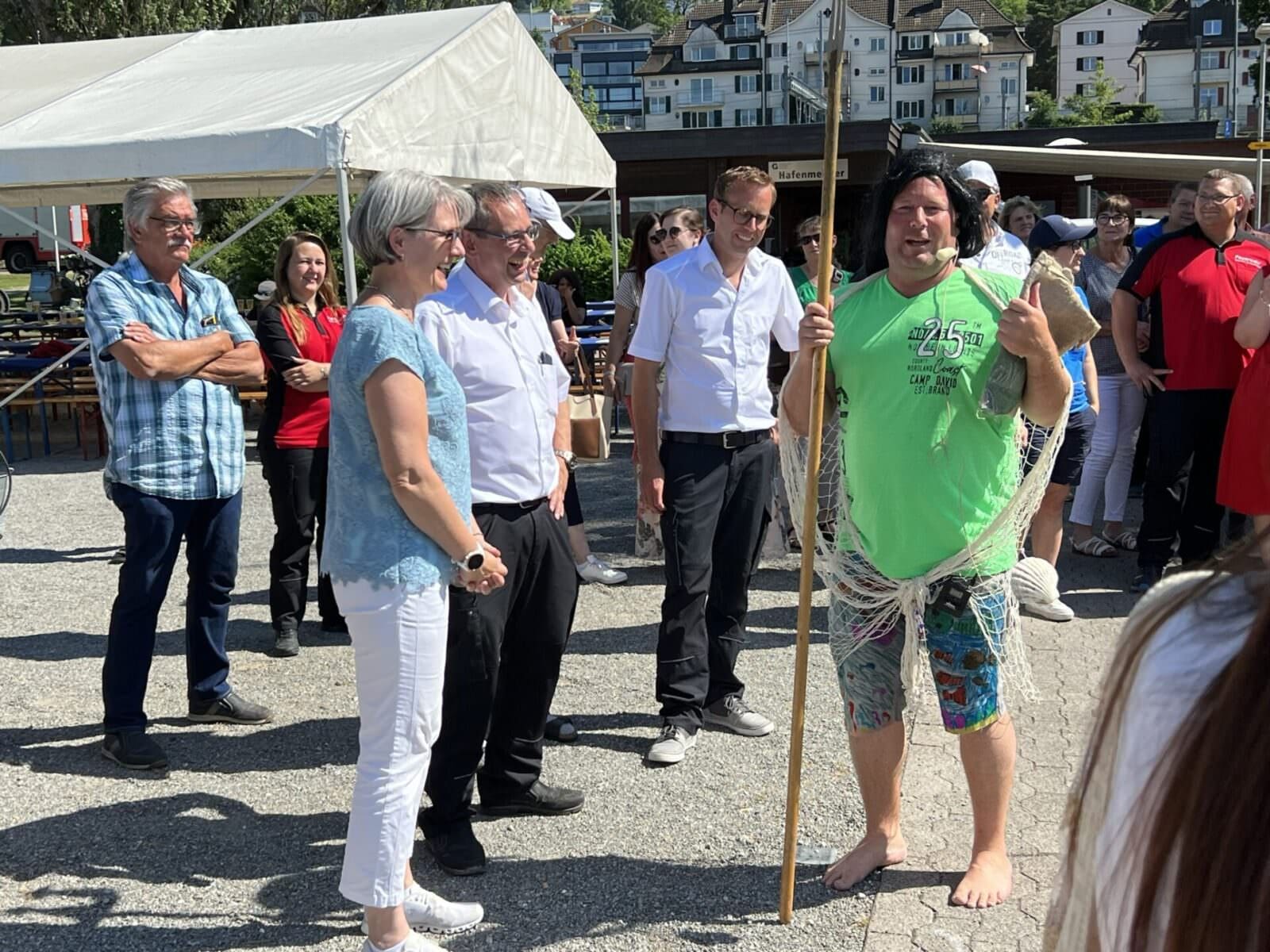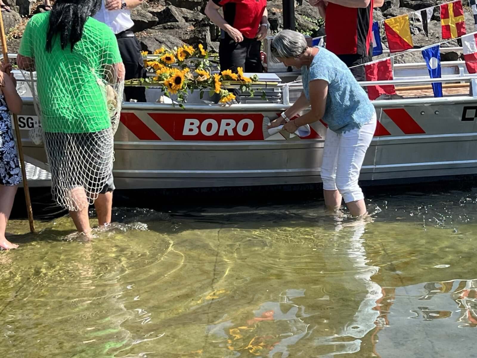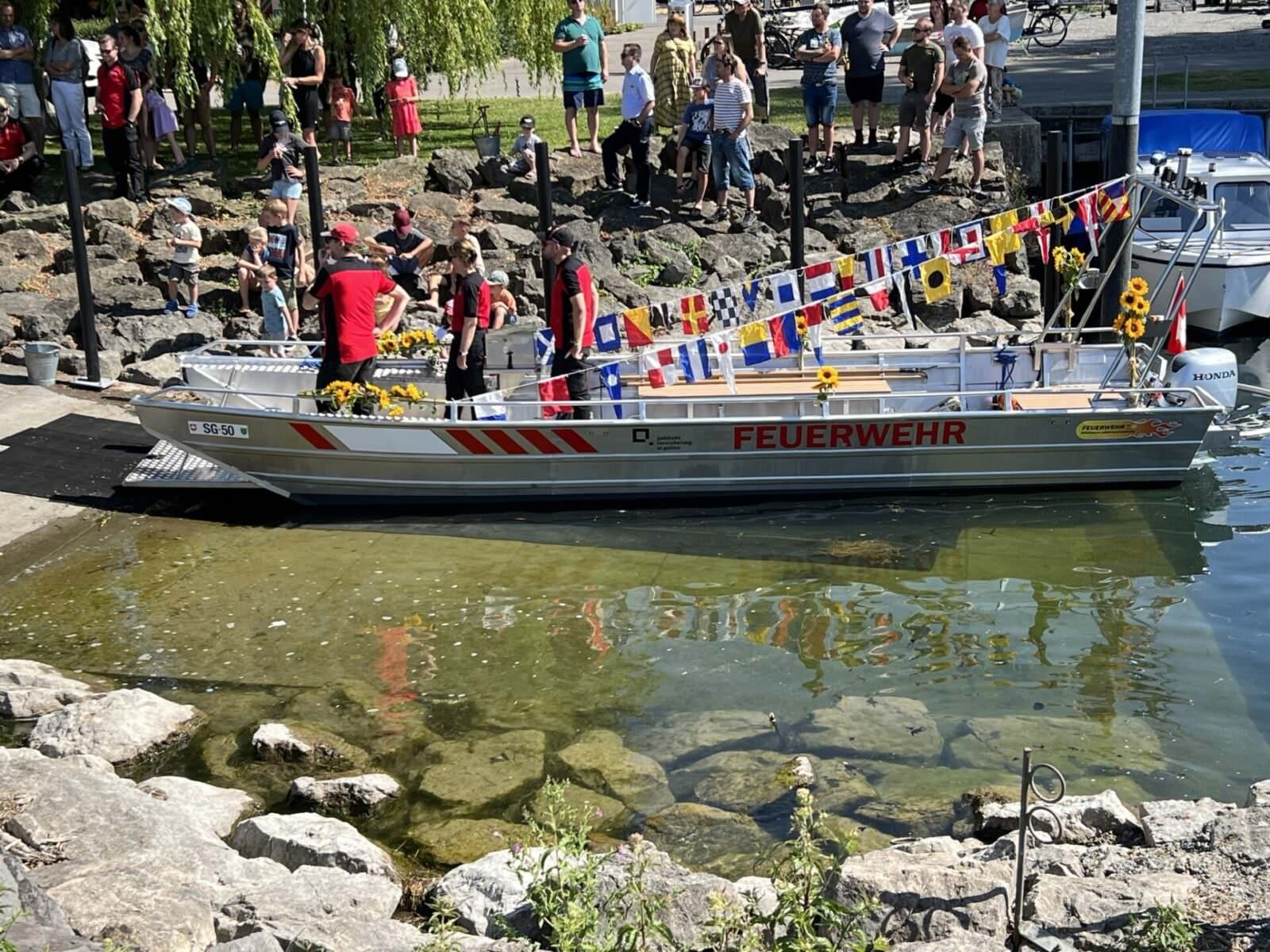 Unsere Feuerwehr Rorschach-Rorschacherberg hat am Samstag mit der obligaten Bootstaufe das neue Boot in Betrieb genommen. „BORO“ heisst das neue Gefährt und ersetzt „FLUTUS“. Und wie bei solchen Bootstaufen üblich führte Neptun durch das Procedere, attestiert von der Taufpatin Andrea Schöb-Sturzenegger, ihres Zeichens Feuerwehrinspektorin und Leiterin Intervention bei der kantonalen Gebäudeversicherung. Und natürlich seit wenigen Tagen als Kantonsratspräsidentin auch die höchste St.Gallerin. Hier einige Schnappschüsse von diesem gelungenen Anlass.
