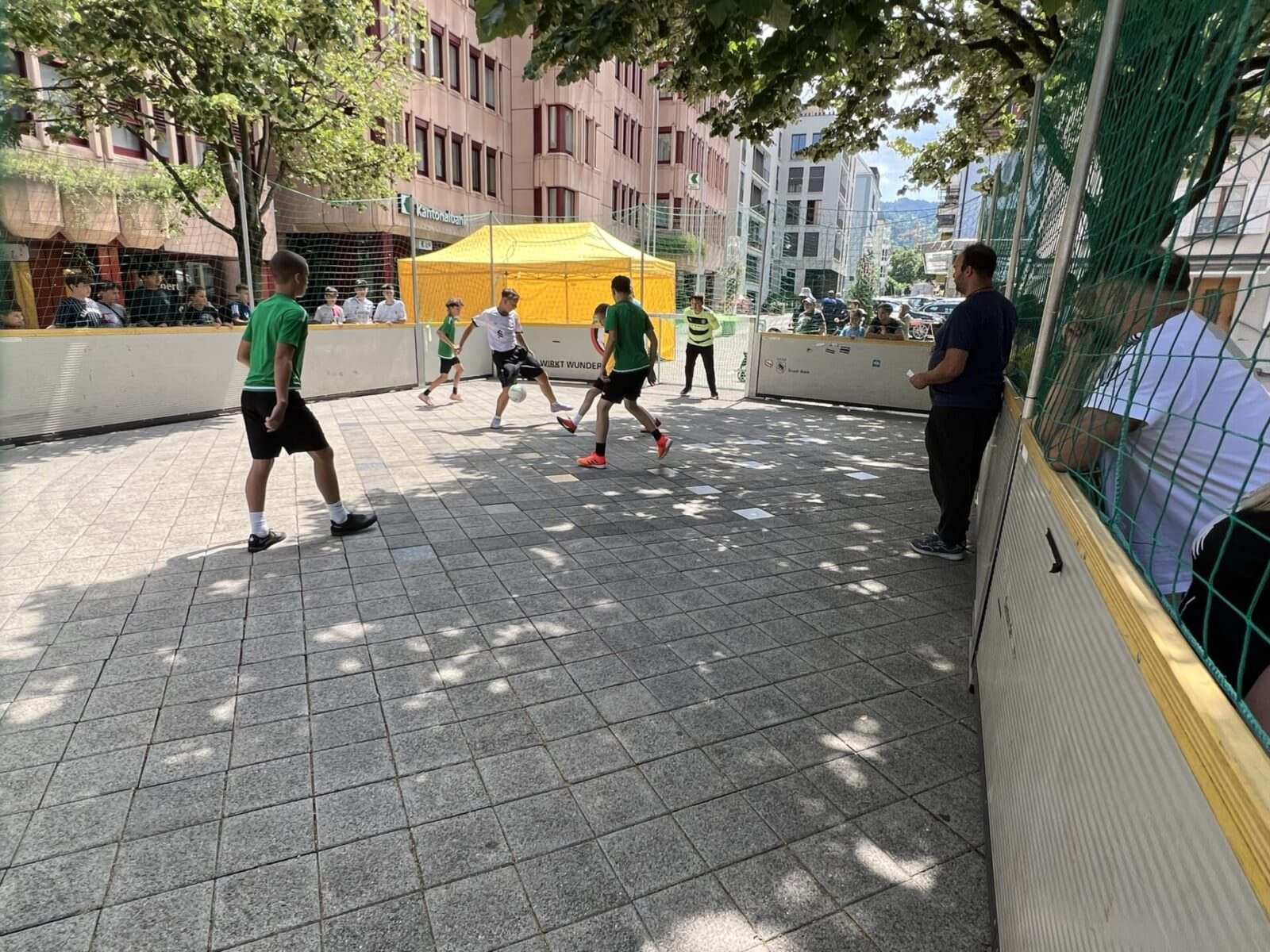 Hier vorerst die Bilder vom Street Soccer-TurnierThemen:KulturRorschach 2. Juli 2023 - 09:52Aufnahmen vom Spielbetrieb auf dem Marktplatz und dann bei der Preisverleihung an der Löwenstrasse. 2024 soll Street Soccer wieder stattfinden. Bilder vom eigentlichen Quartierfest folgen morgen Montag. Die Rangliste:Teilen mit: Einen Link per E-Mail an einen Freund senden (Wird in neuem Fenster geöffnet) E-Mail Drucken (Wird in neuem Fenster geöffnet) Drucken Auf Facebook teilen (Wird in neuem Fenster geöffnet) Facebook Auf X teilen (Wird in neuem Fenster geöffnet) X Auf WhatsApp teilen (Wird in neuem Fenster geöffnet) WhatsApp Gefällt mir:Gefällt mir Wird geladen …Newsletter abonnieren Bitte dieses Feld leer lassenBitte wähle, ob Du über jeden neuen Beitrag sofort oder lieber jeden Morgen gegen 9 Uhr eine Zusammenfassung der neusten Beiträge erhalten möchtest.Liste(n) auswählen: Neues vom Echo (Zusammenfassung) Neues vom Echo (Sofortbenachrichtigung) Dieses Feld wird benötigt.Prüfen Sie Ihren Posteingang und den Spamordner, um Ihr Abonnement zu bestätigen.
