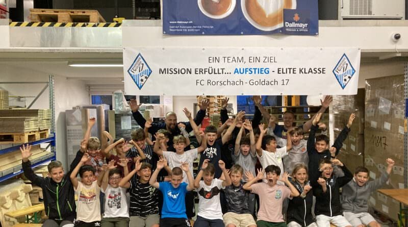 Die D-Junioren des FC Rorschach-Goldach 17 um das Trainerteam Marcel Haus, Antonio Marinosci & Jesus Martinez haben kürzlich ihren Aufstieg in die Elite-Klasse in den Räumlichkeiten des Teamsponsors Dallmayr (Seestrasse 108, 9326 Horn) mit einem grossen Grillfest mit den Junioren, Eltern und Geschwistern gefeiert. Mannschaft, Trainer und Verein bedanken sich herzlich bei Burim Beqiraj.