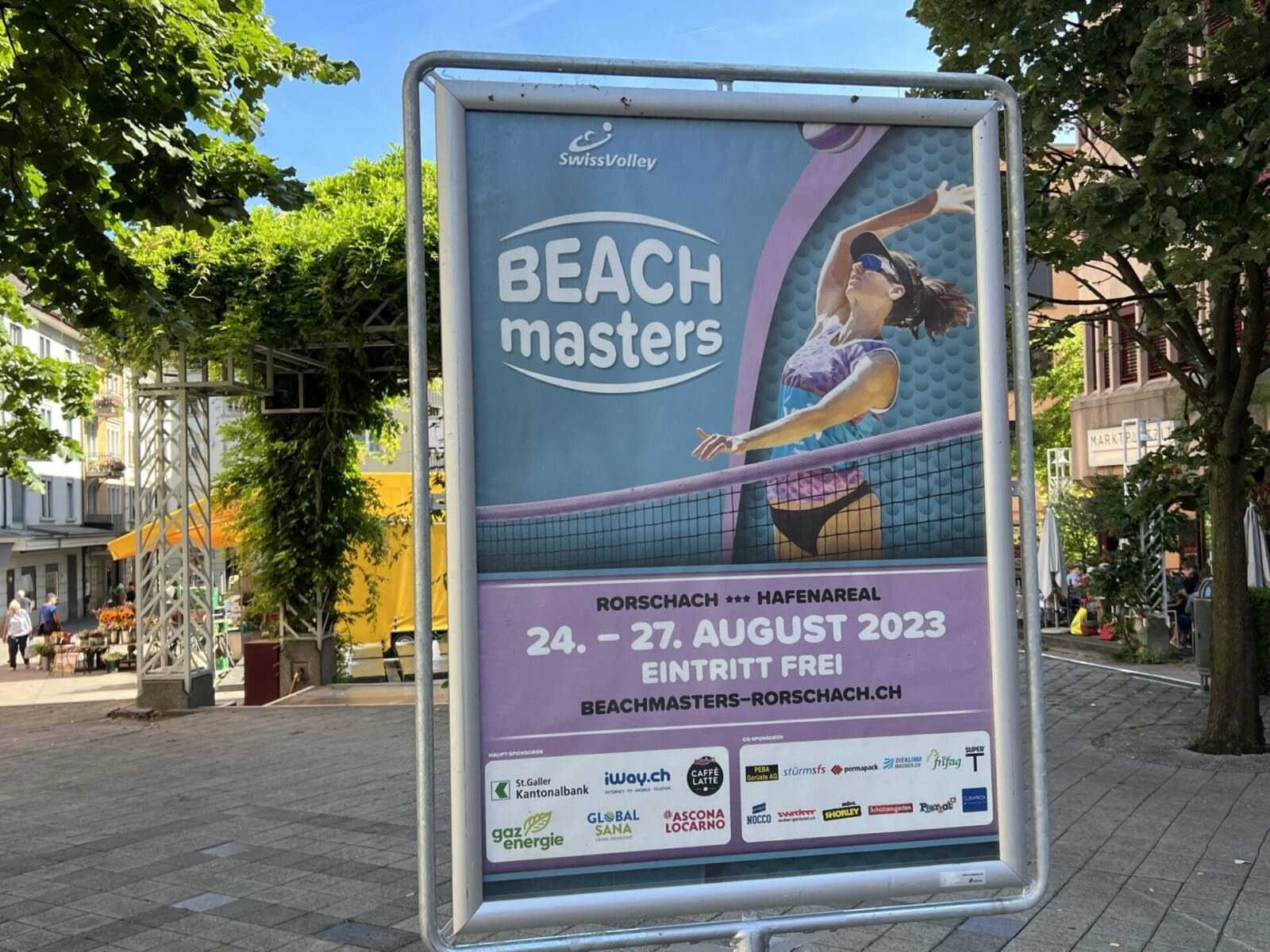 Das Beachmasters Rorschach findet vom 24. bis 27. August 2023 statt. Die grossen Plakate sind in Rorschach nicht mehr zu übersehen. Mehr Infos zu diesem Grossanlass am Rorschacher Hafen finden Interessierte hier.