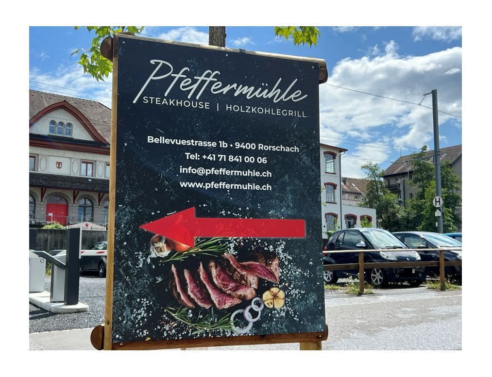 Die Pfeffermühle macht auf peppige Art auf sich aufmerksam. Mehr zur Pfeffermühle finden Interessierte auch hier, hier und hier. Das Steakhouse Pfeffermühle macht vom 2. bis 13 August Betriebsferien. Es gelten folgende Öffnungszeiten: Montag-Samstag, 17:00-23 Uhr.