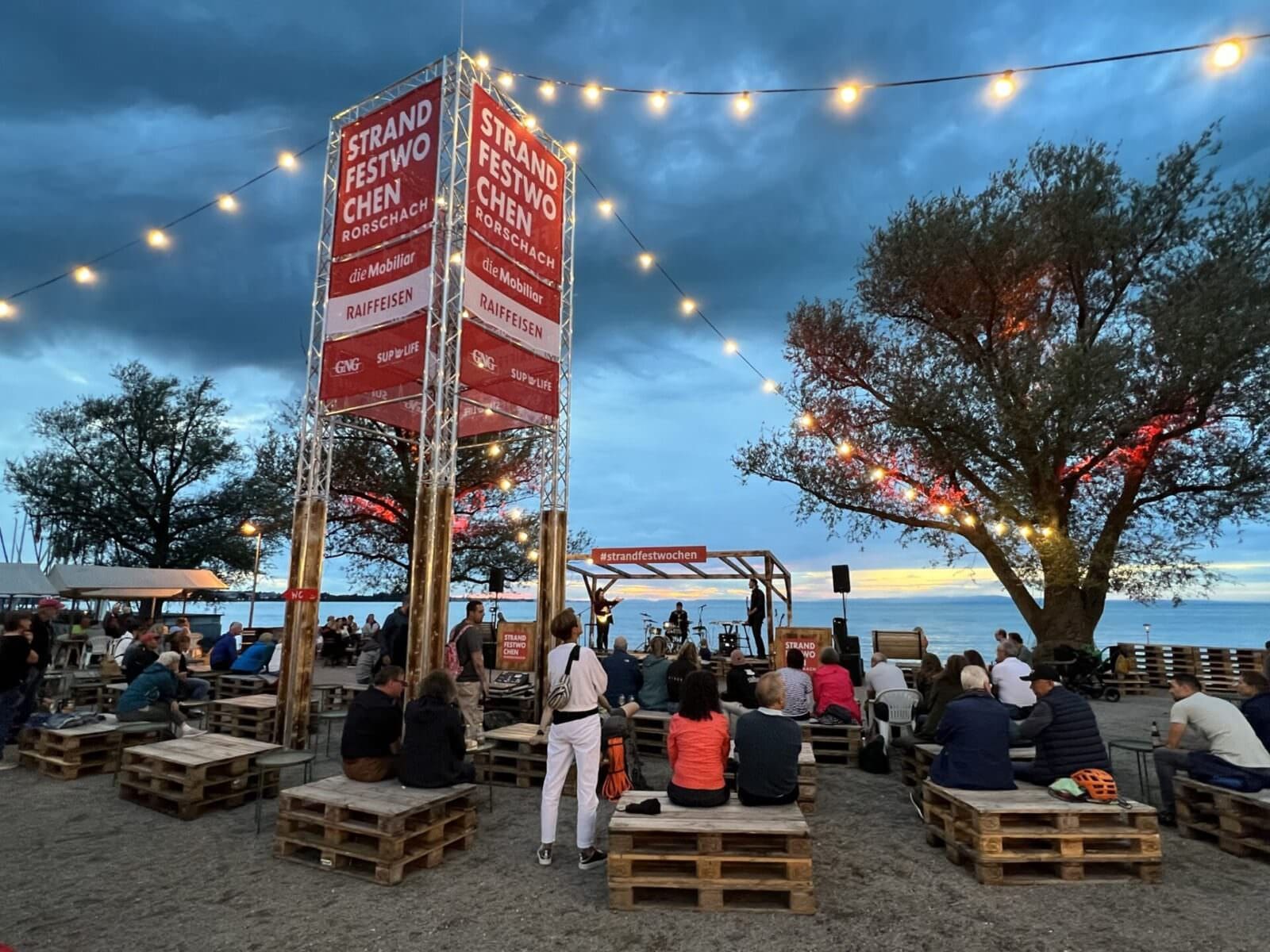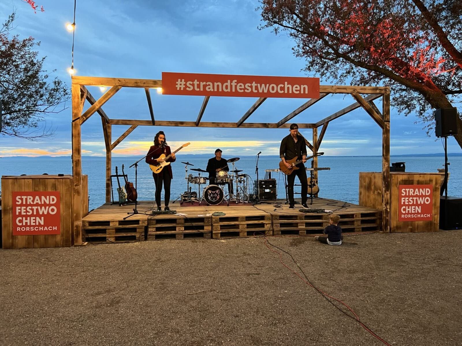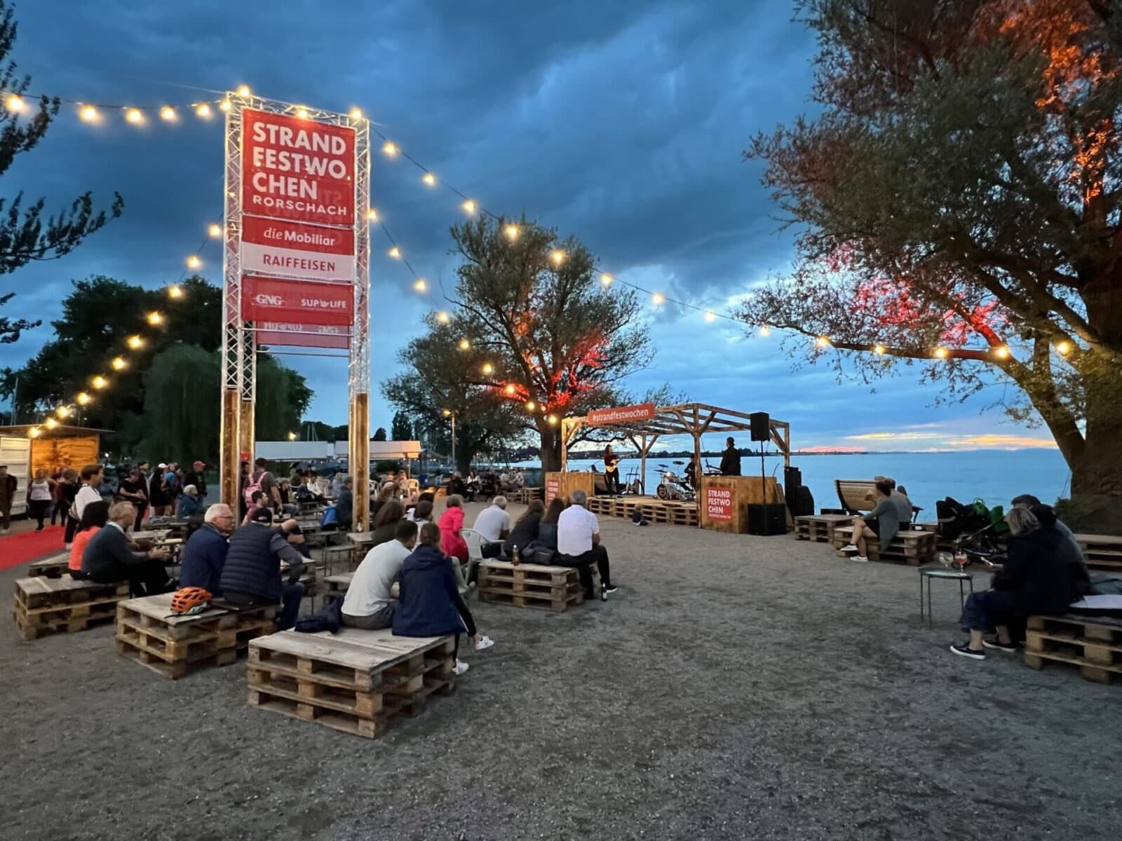 Seit gestern Abend laufen in Rorschach die Strandfestwochen 2023. Der Starttag war wettermässig eher durchzogen, aber das geplante Konzert fand wenigstens bis zur Pause statt. Hier ein paar Schnappschüsse. Heute Samstag ist das Gelände aber geschlossen. Die Wetteraussichten sind eher suboptimal. Witterungsbedingte Änderungen findet man immer auch hier und hier. Morgen Sonntag ist – wenn das Wetter dann auch mitmacht – die Hafenbar von 14 bis 22 Uhr in Betrieb.