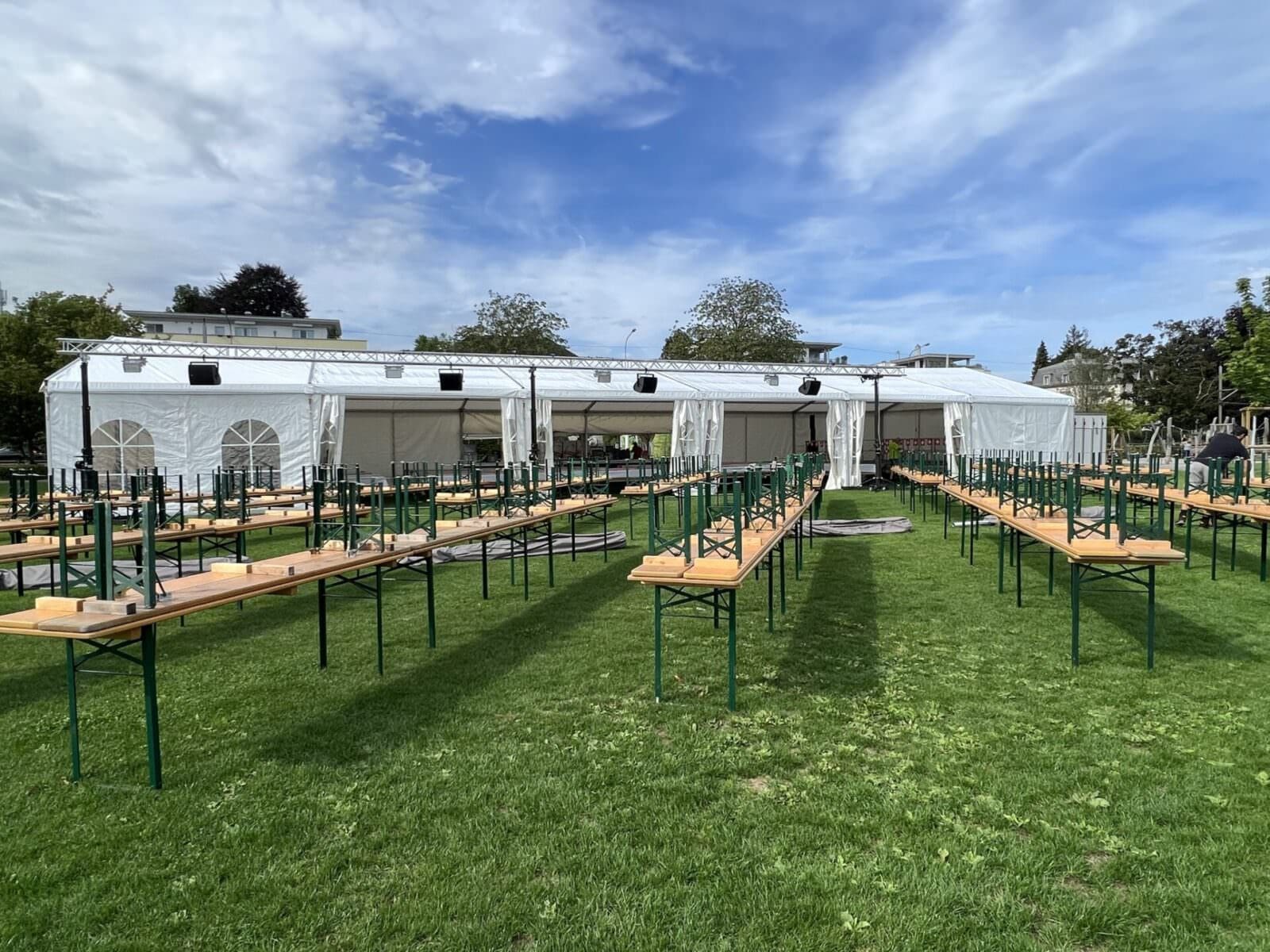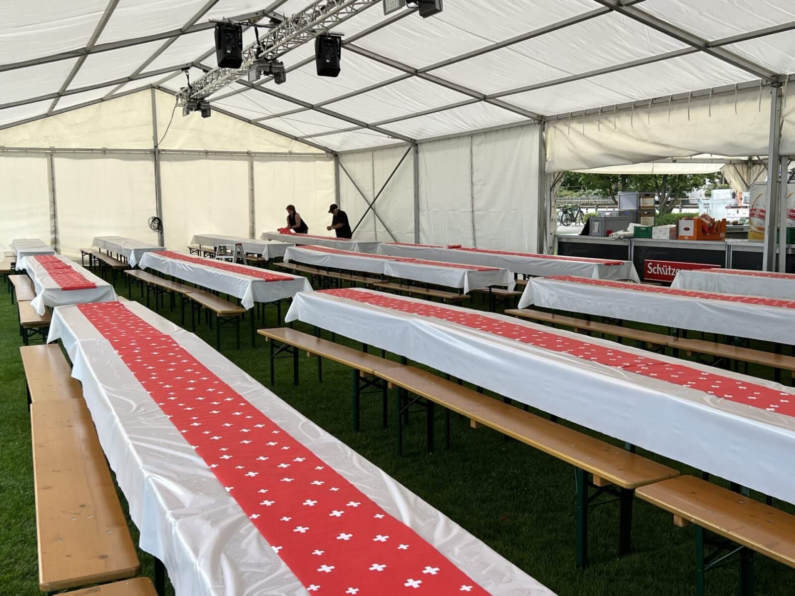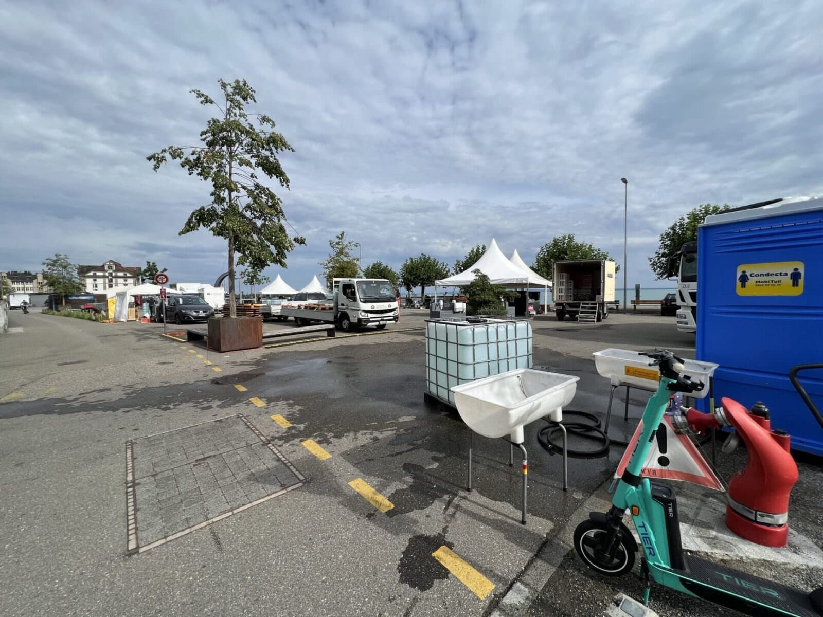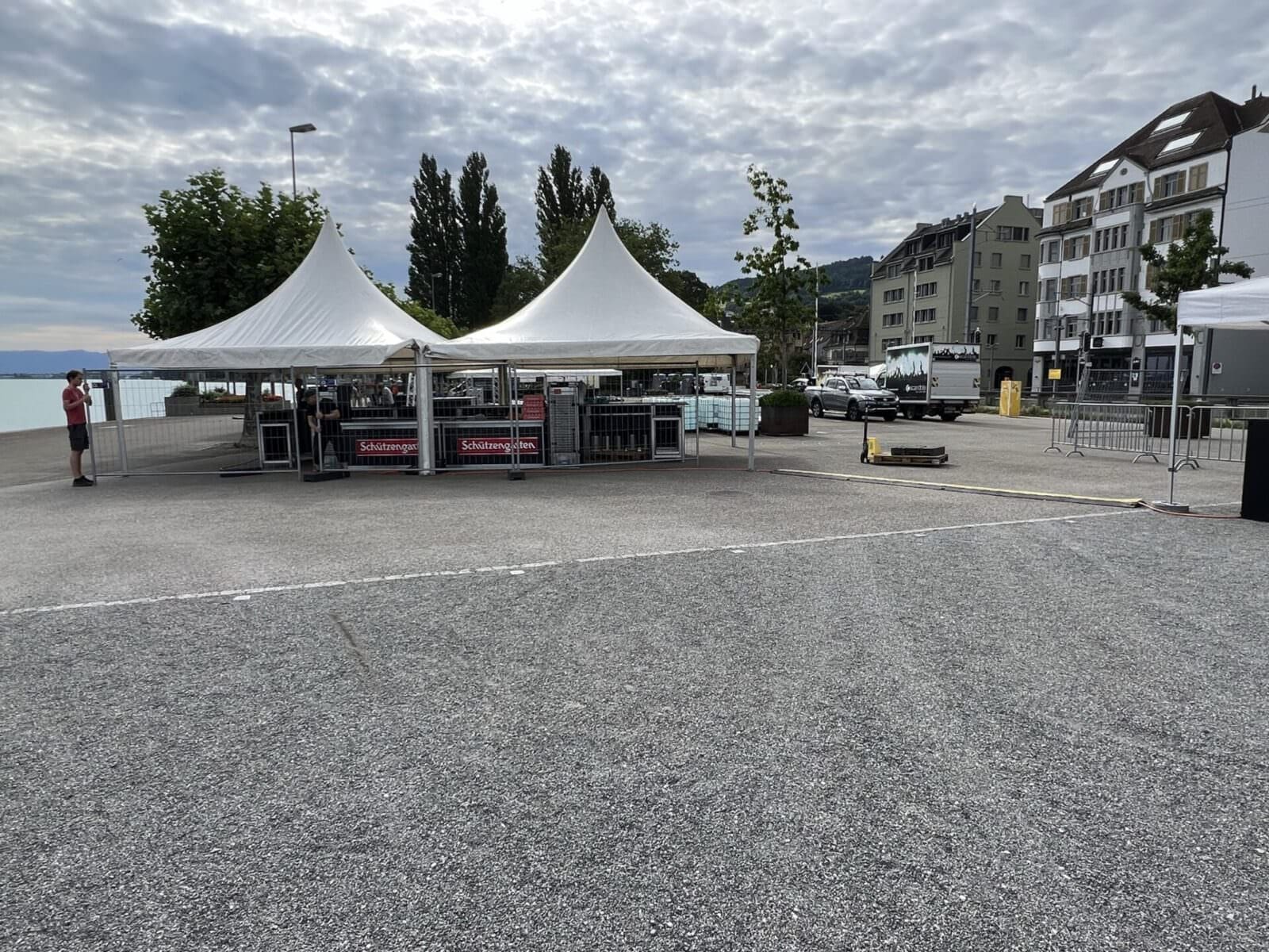 Rorschach bereitet sich heute am letzten Tag im Monat Juli auf zwei Grossanlässe vor. Auf dem Hafenplatz (ab 16 Uhr das Daydance am See – ist bereits ausverkauft!) und auf der Arionwiese (ab 17 Uhr Bundesfeier) sind viele Hände daran, die Infrastruktur aufzubauen. Die Bilder wurden heute so um 10 Uhr aufgenommen.