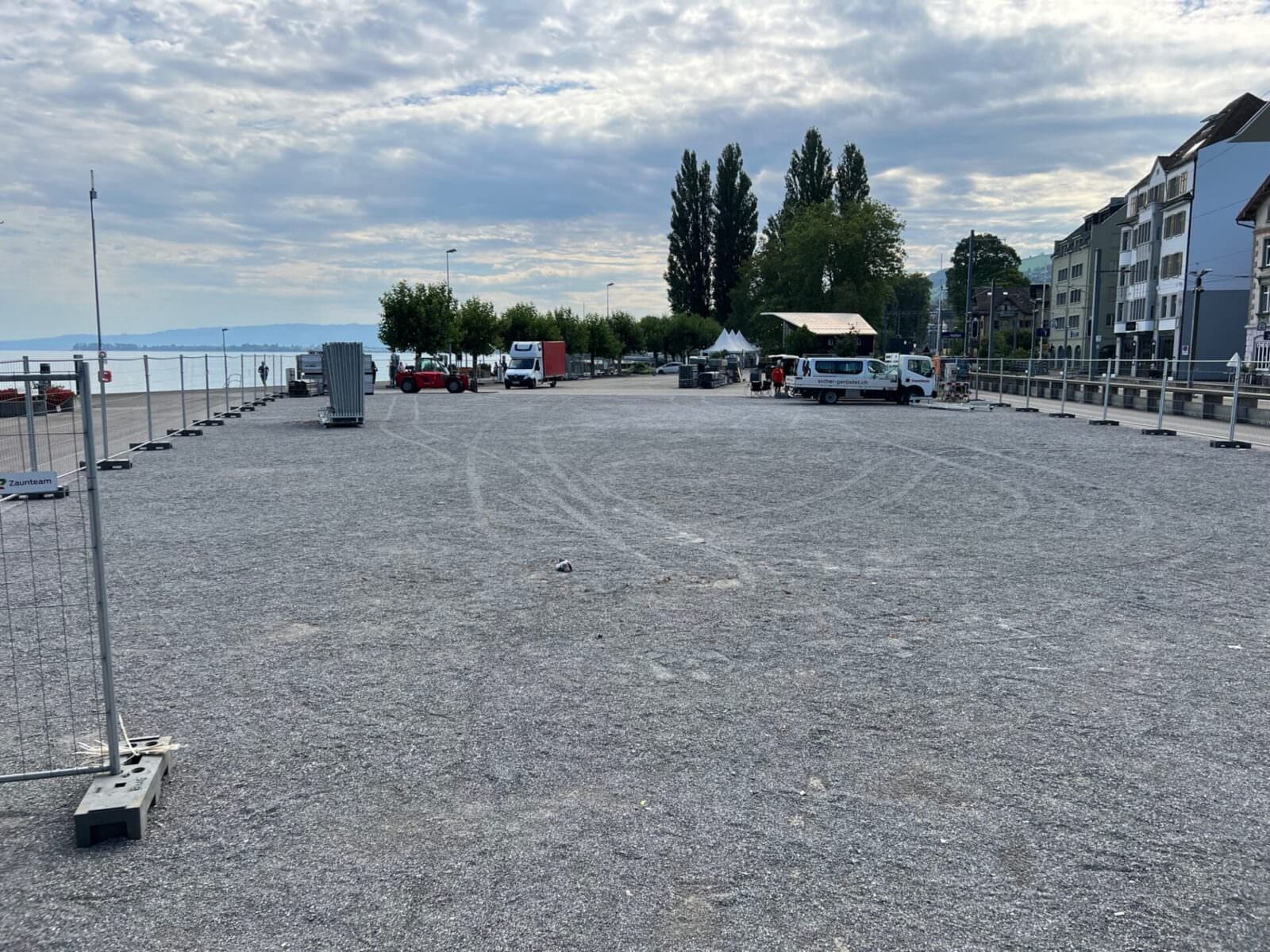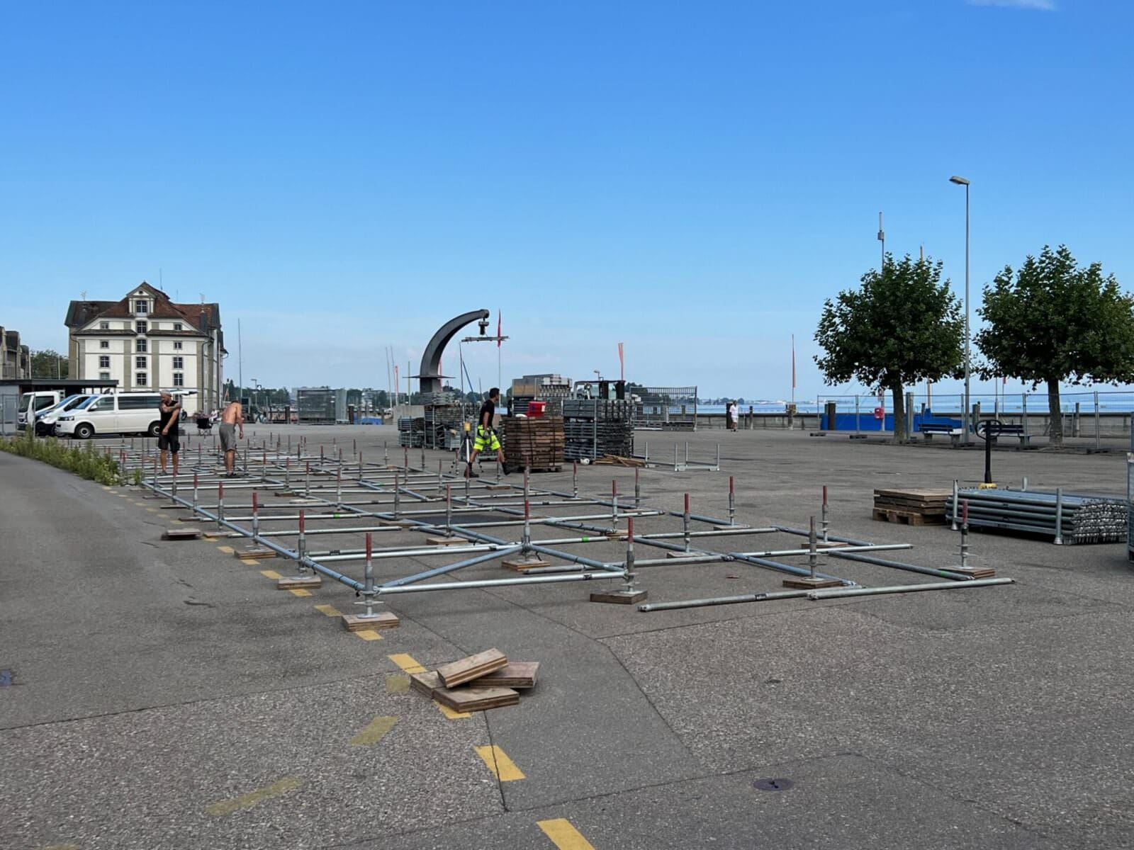 Der Hafenplatz wird in den nächsten Tagen zur ganz grossen Baustelle. Gestern haben die Aufbauarbeiten für das Beachmasters in Rorschach begonnen.