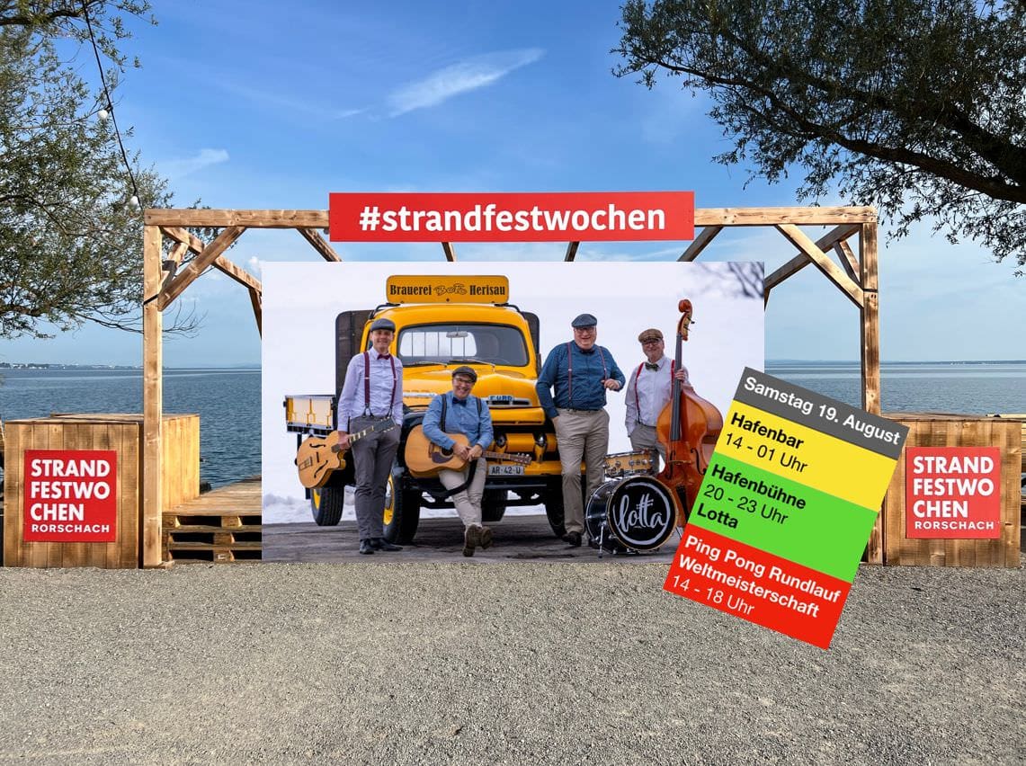 Die Rorschacher Strandfestwochen werden auch heute Samstag und morgen Sonntag von prächtigstem Sommerwetter profitieren können. Immer vorausgesetzt, dass uns keine unvorhersehbare Gewitterzelle einen Besuch abstattet. Nach dem gestrigen „Los Grecos“-Konzert stehen heute „Lotta“ auf der Hafenbühne. Und am Nachmittag wird ab 14 Uhr die Ping Pong Rundlauf Weltmeisterschaft ausgetragen. Aktuelle Pics gibt es auch immer hier.