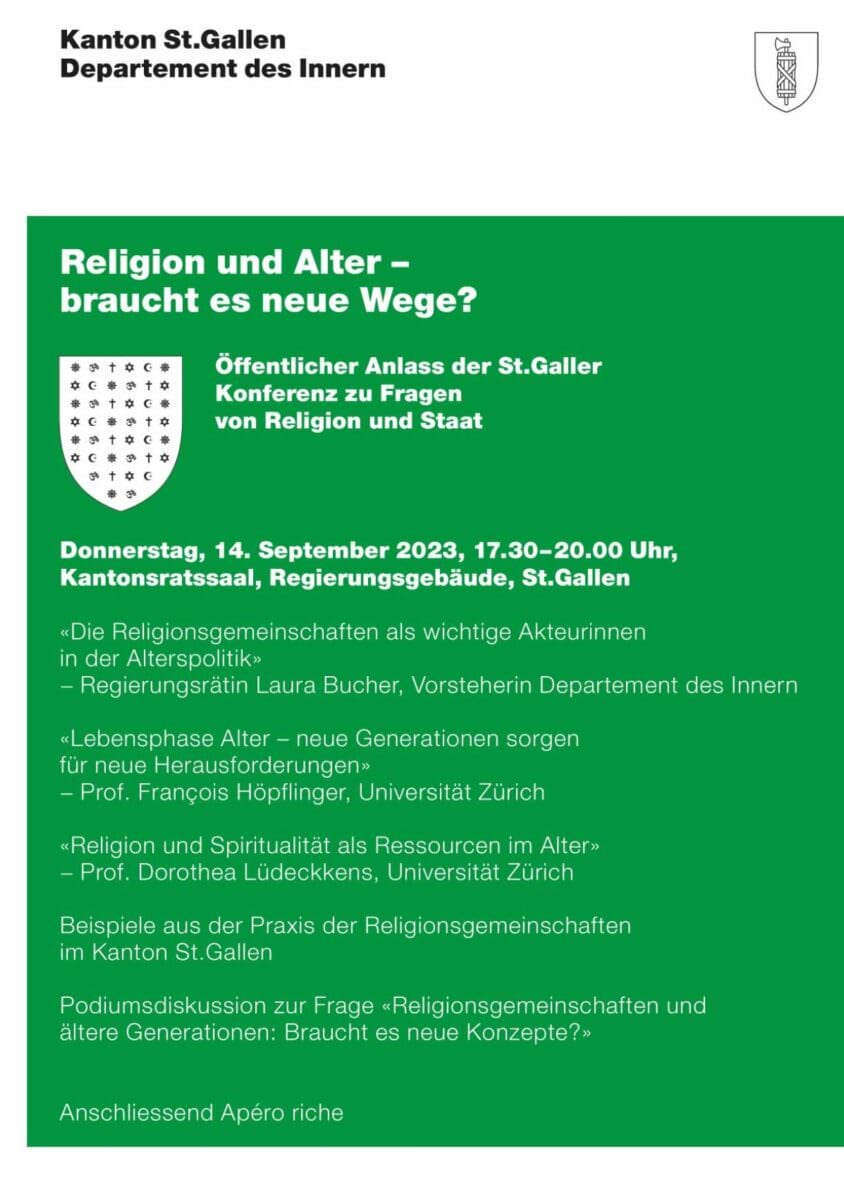 In der St.Galler Konferenz zu Fragen von Religion und Staat diskutieren kantonale Stellen mit Vertretenden der Religionsgemeinschaften aktuelle Themen. Immer im ida-Jahr organisiert die Konferenz einen öffentlichen Anlass.