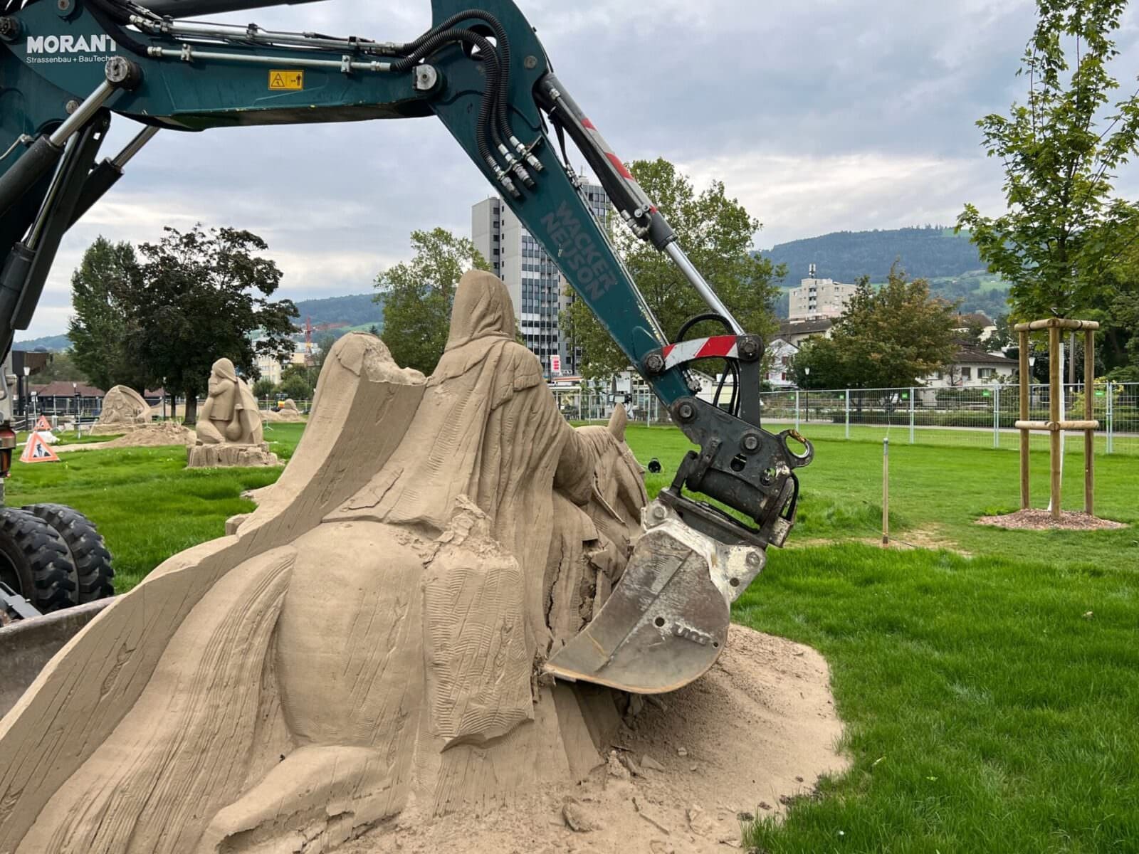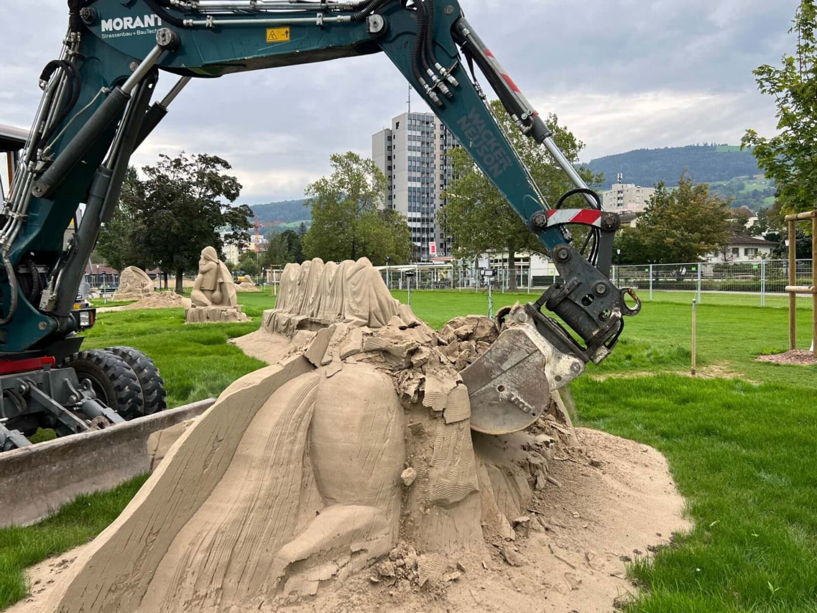 Wie hier bereits angekündigt wurde heute Vormittag mit dem Rückbau der Sandskulpturen begonnen. Hier ein paar Bilder davon. Freuen wir uns auf 2024!