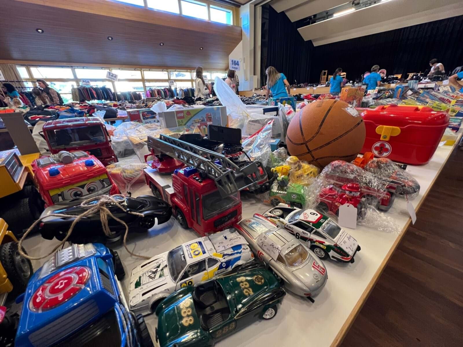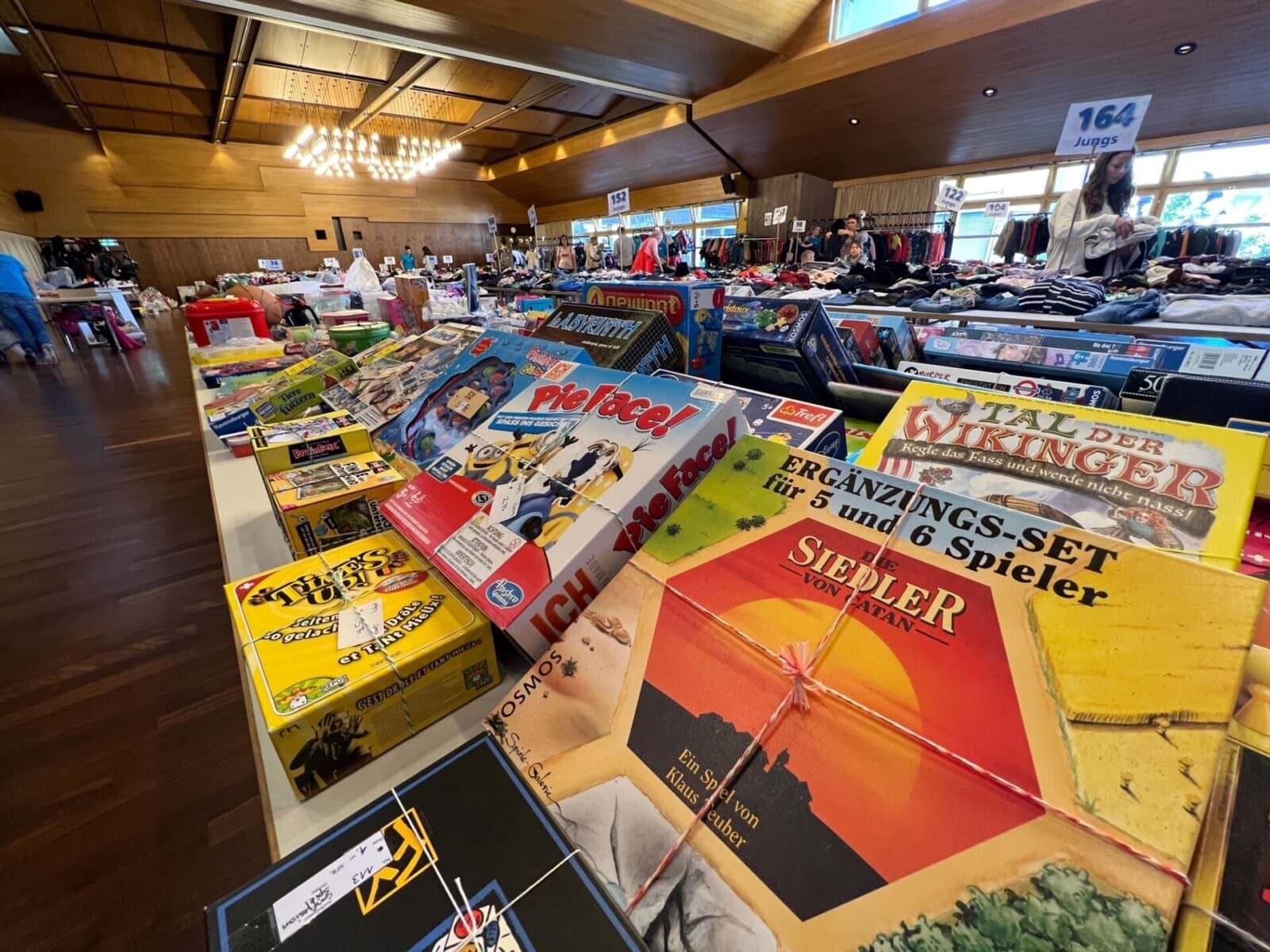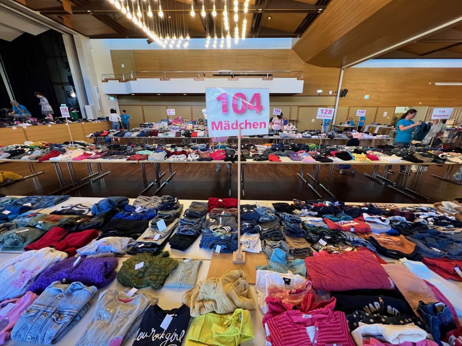 Noch von 9 bis 11 Uhr kann man heute Mittwochmorgen vom Angebot der Kinderkleiderbörse profitieren. Die hier gezeigten Bilder wurden gestern Abend aufgenommen. Das wird heute bestimmt anders aussehen. Die nächste Kinderkleiderbörse findet am 12./13. März 2024 statt.