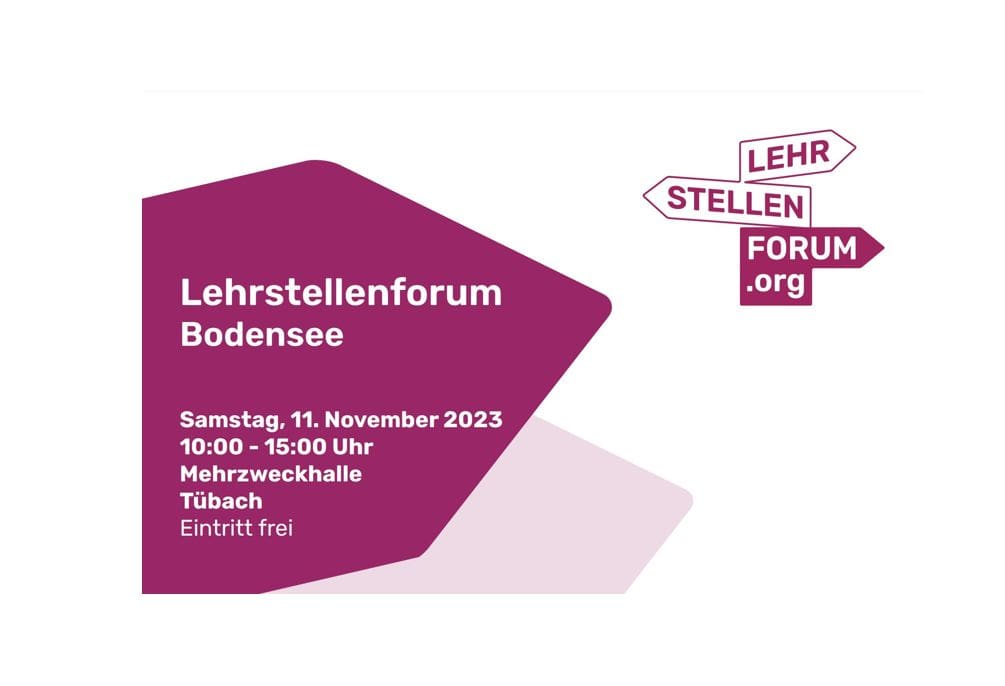 Unter diesem Motto präsentieren sich, am 1. Lehrstellenforum Bodensee vom Samstag, 11. November in der Mehrzweckhalle Tübach viele Lehrbetriebe, die für unterschiedliche Berufsgattungen aus der Region Informationen an interessierte SchülerInnen der Oberstufe und deren Eltern oder Angehörigen weitergeben.