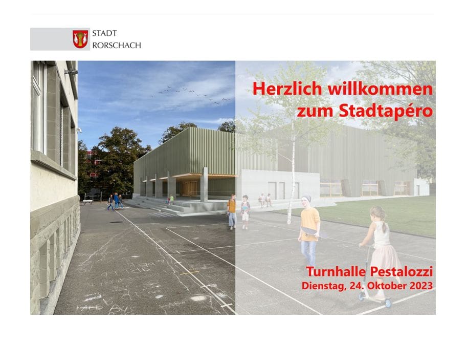 Am 19. November 2023 stimmen die Rorschacherinnen und Rorschacher über einen Kredit von CHF 15’374’000.00 ab für den Bau einer Doppelturnhalle mit Tiefgarage und Wärmeverbund auf dem Areal des Schulhauses Pestalozzi. Die Turnhalle selbst kostet 10,63 Mio. Franken. 2,9 Mio. Franken macht die Tiefgarage aus, welche von der Spezialfinanzierung Parkieren getragen wird. Der Wärmeverbund, an den auch das Schulhaus Pestalozzi, die Fachstelle Jugend, Familie Schule sowie das Haus Surber angeschlossen werden, schlägt mit rund 1,7 Mio. Franken zu Buche.